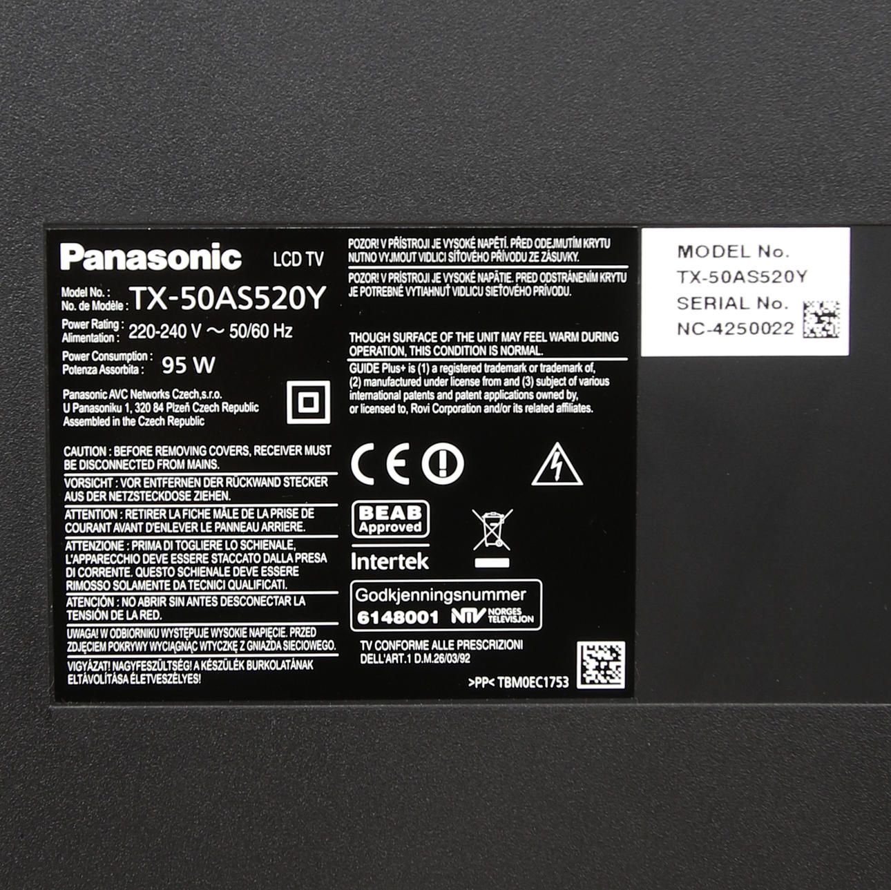 Model. TX 50AS520Y, remote control and power cable included.