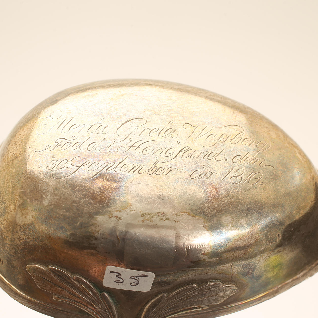 With inscription; “Merta Greta Wessberg Born in Härnösand on 30 September Year 1810". Length including shaft approx. 41 cm.