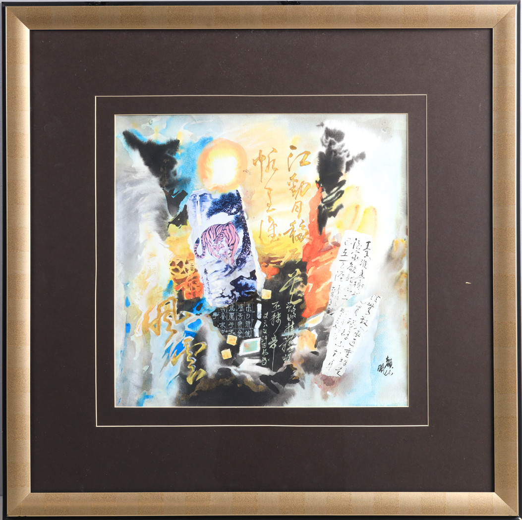 3115662. NGAN YI MING (KINA, FÖDD 1963). Composition with tiger, mixed technique.