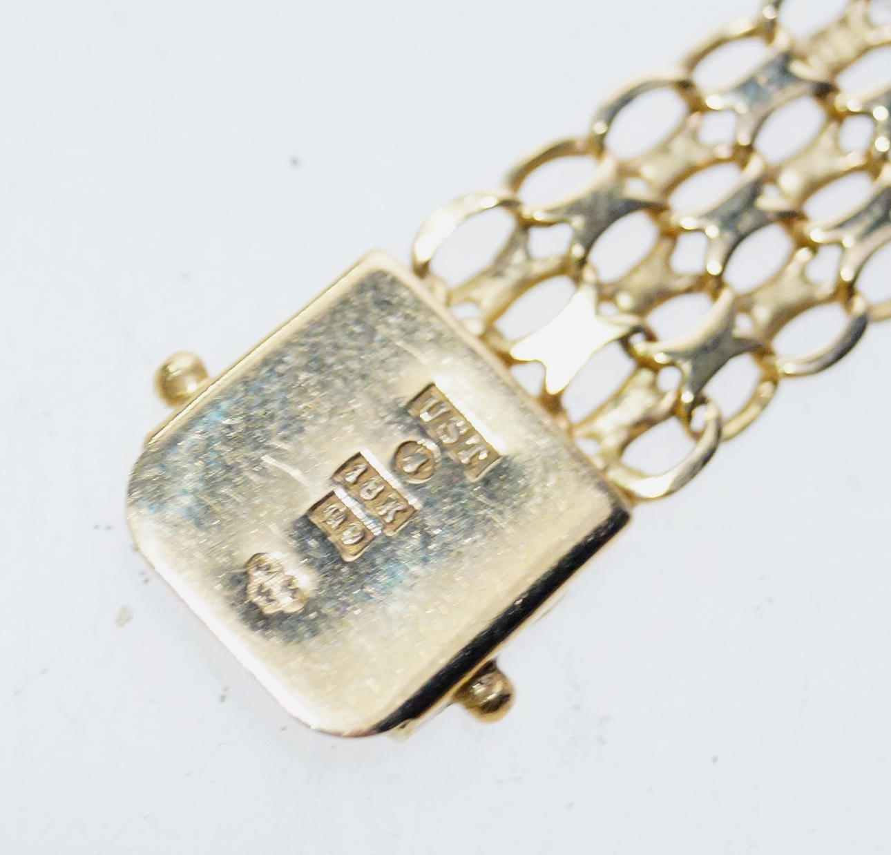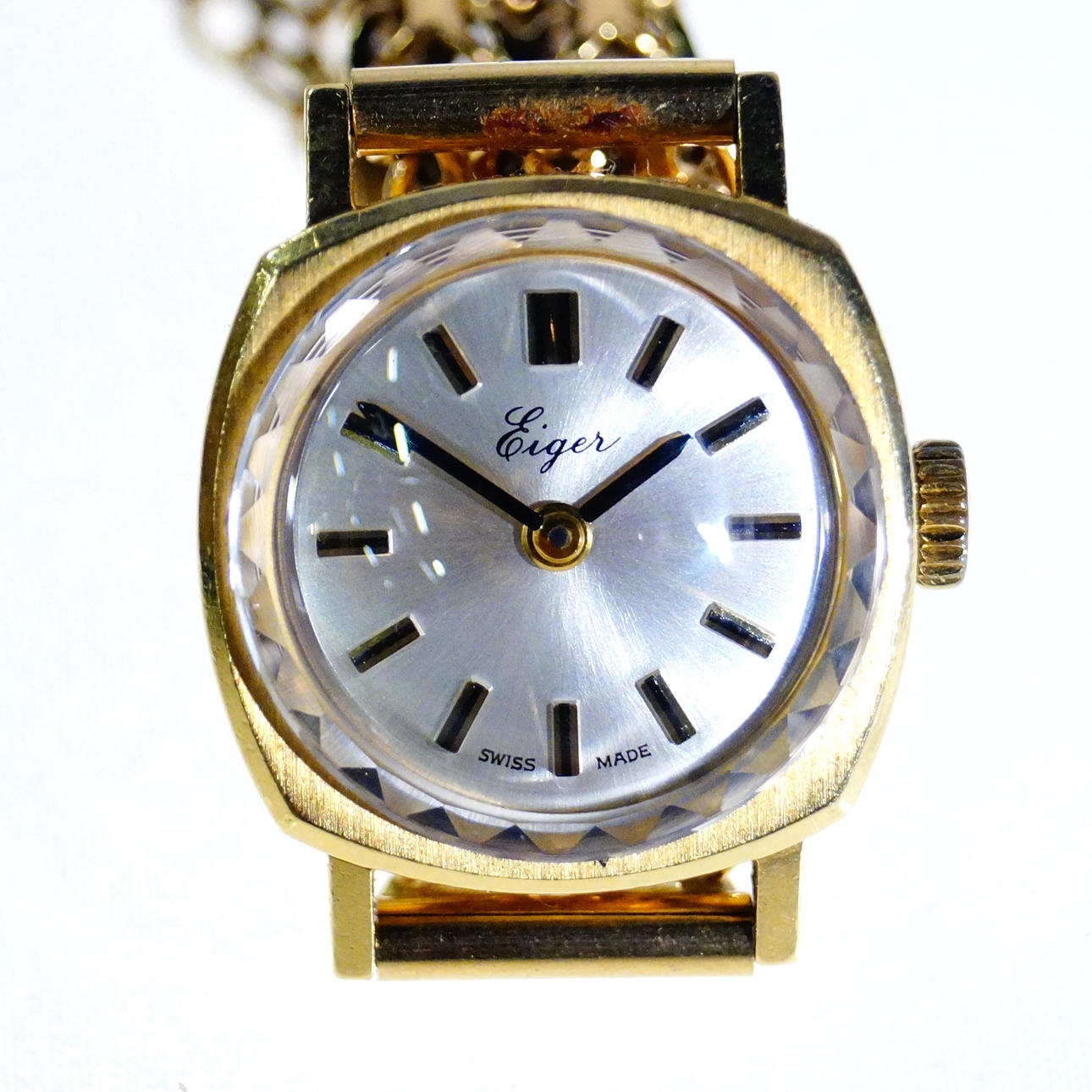 Watch 20 x 20 mm, length with bracelet 18 cm. Bracelet width 12 mm. Weight: 26.6g.