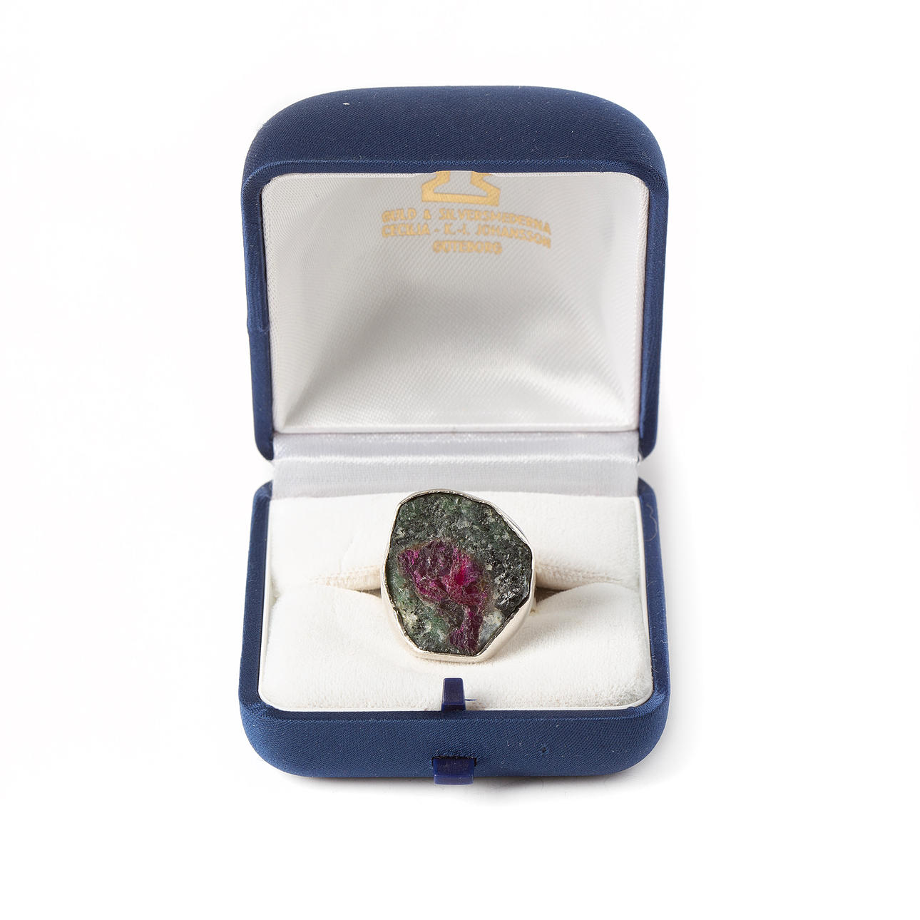 Normal wear and tear. The stone is somewhat loose in its setting.