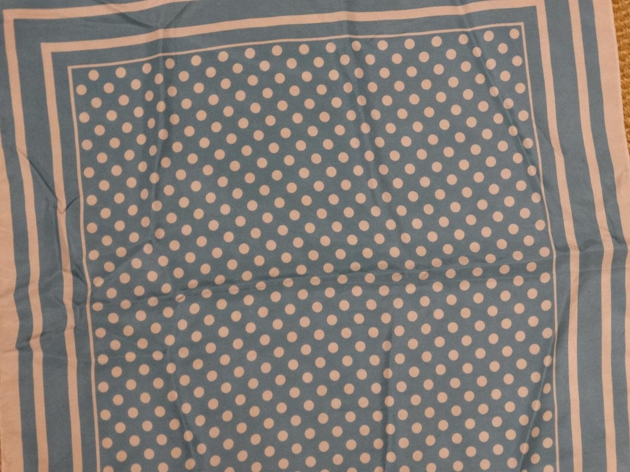 SILK SCARF, BLUE WHITE DOTS AS A PATTERN.