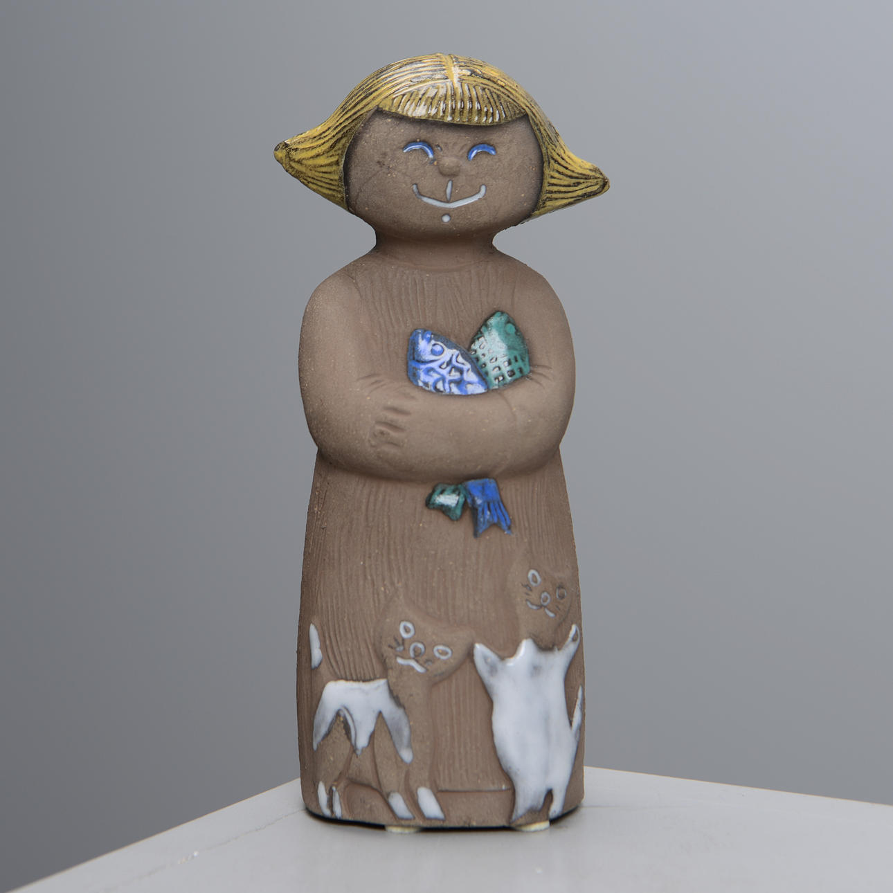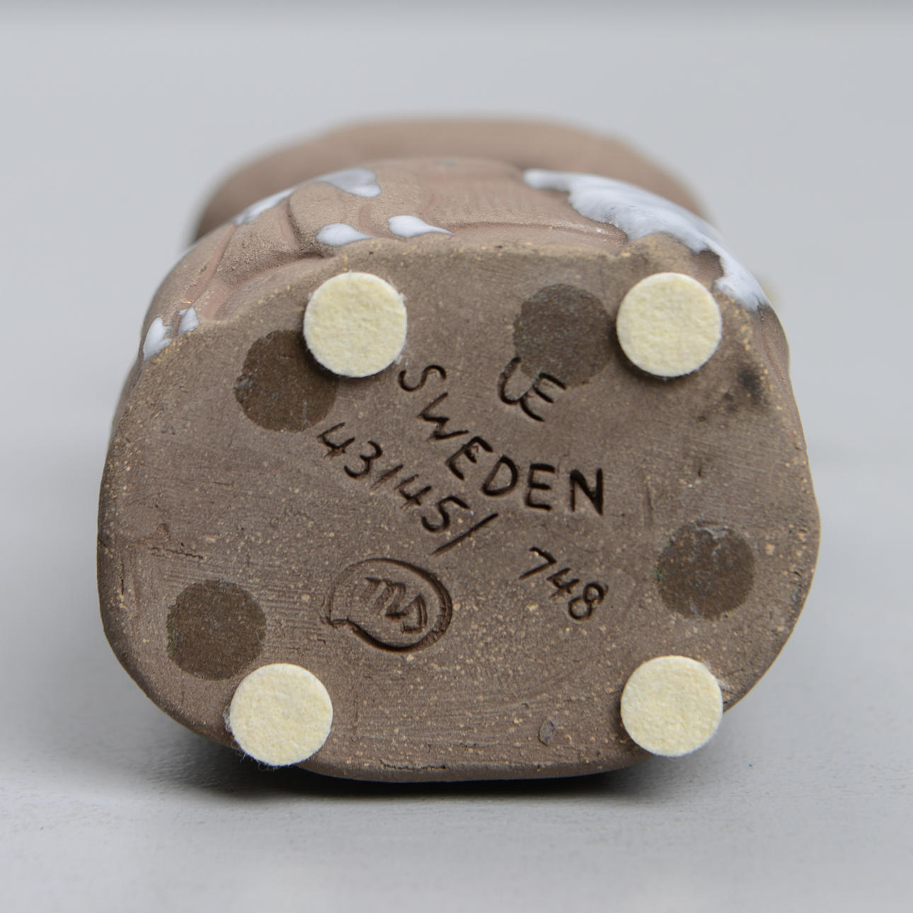 After her time at Gustavsberg Porslinsfabrik, Mari Simmulson became employed at Upsala-Ekeby AB in Uppsala in 1949 and continued until the factory was closed down in 1972. Her time at Upsala-Ekeby was characterised by versatility and creativity, and she created an impressive variety of ceramic objects, including vases, figurines, reliefs and wall tiles.