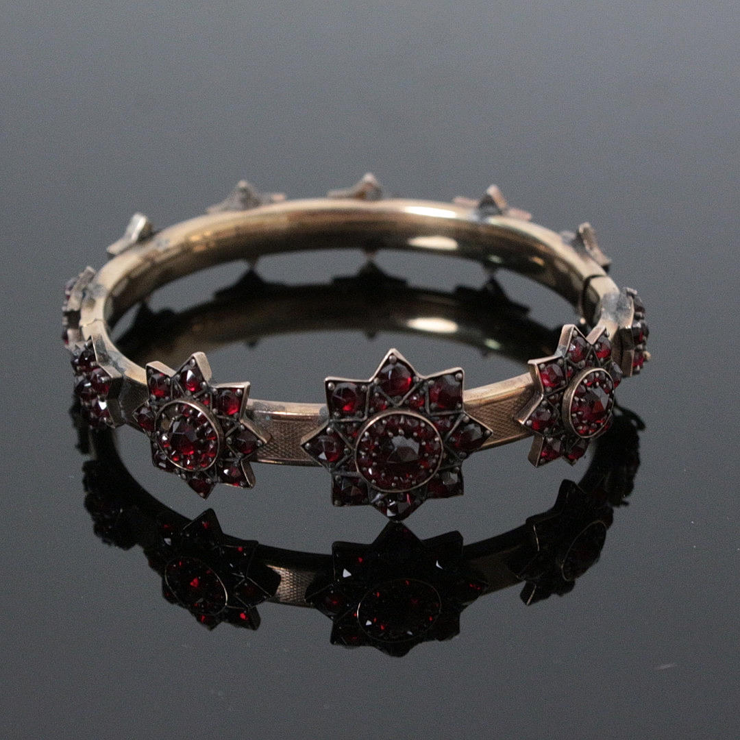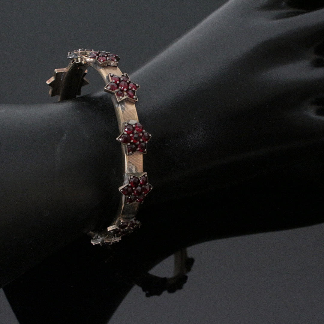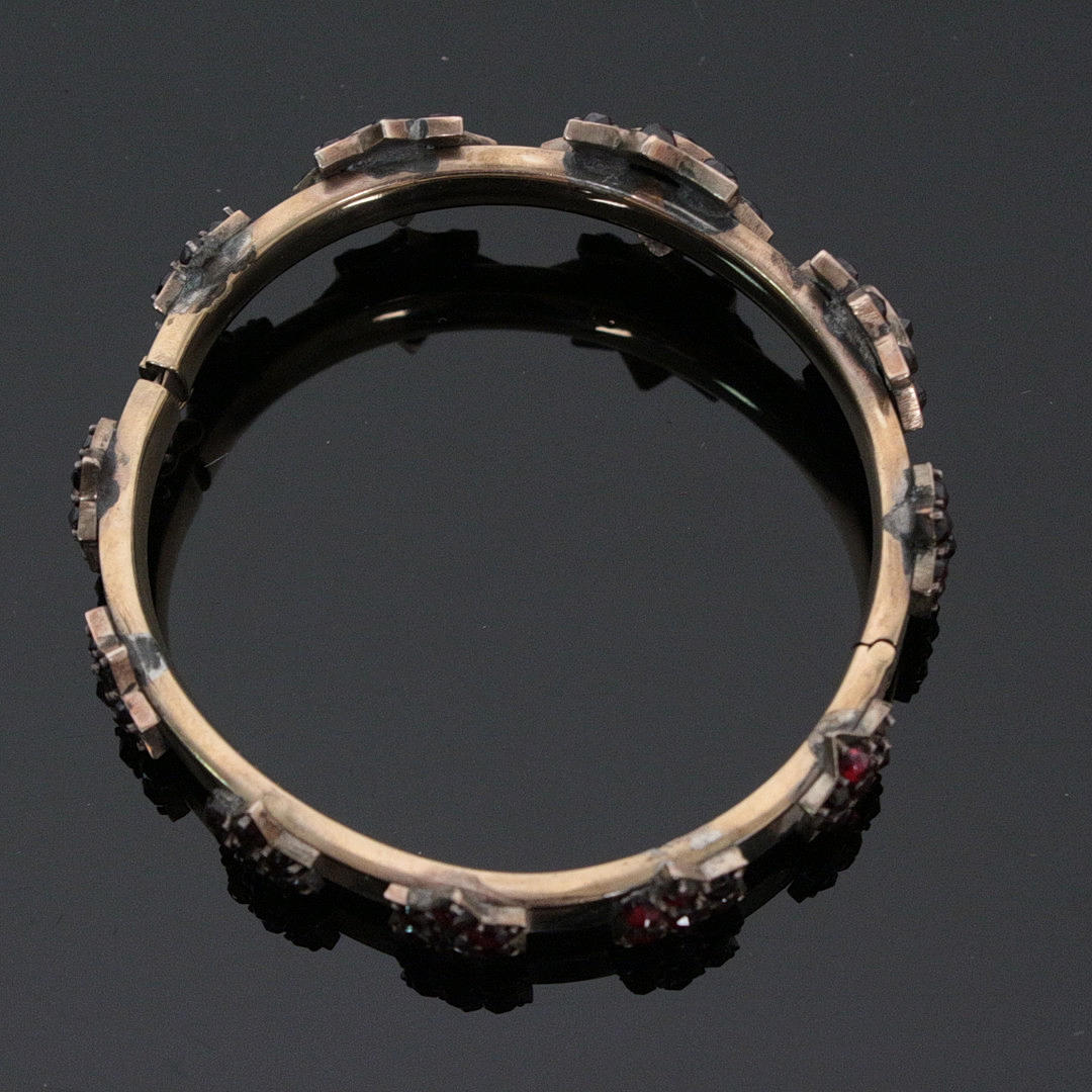 Bohemian garnet bracelet, 333 gold, diameter 6 cm, Weight approx.: 28.78 grams.