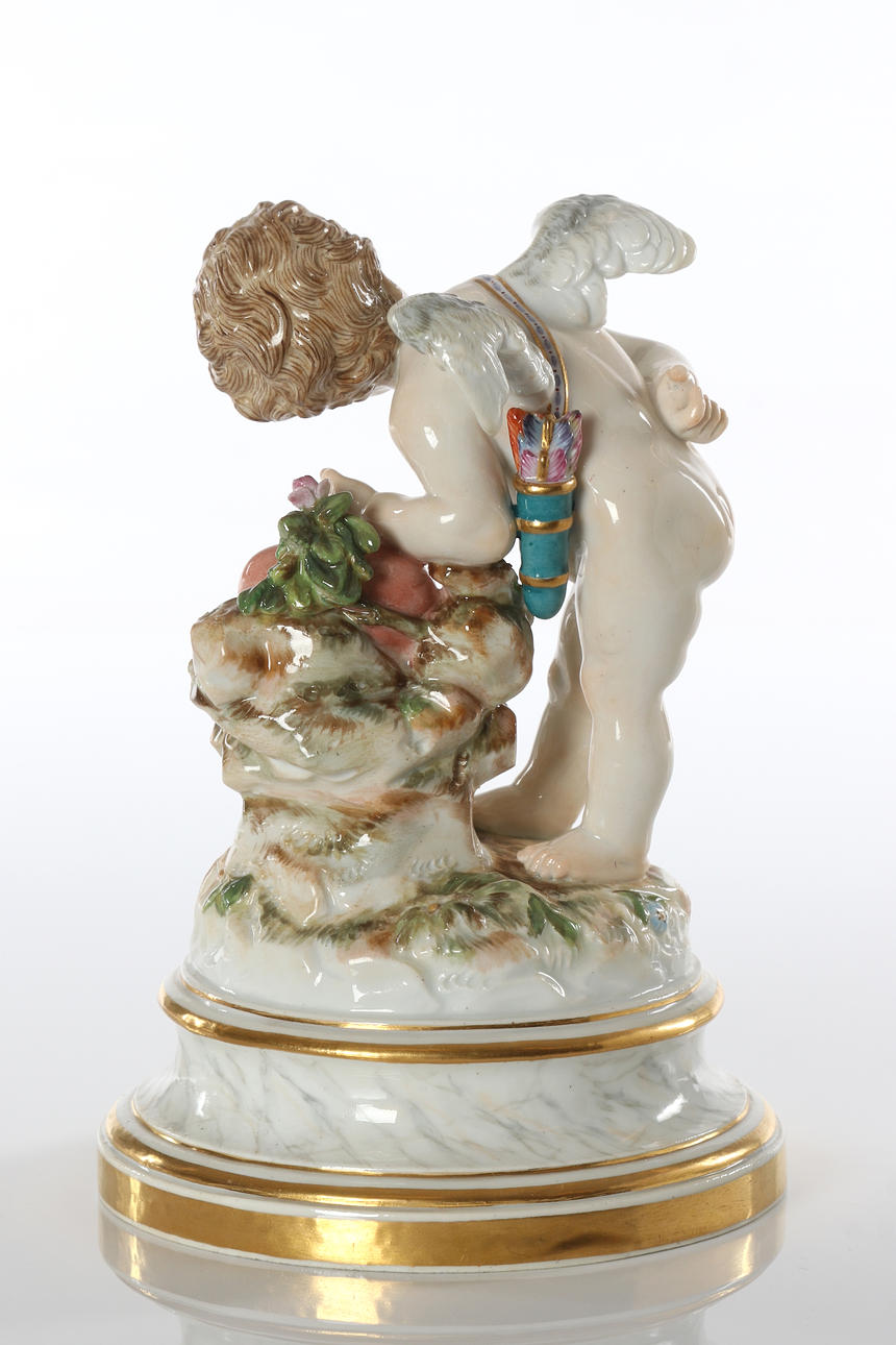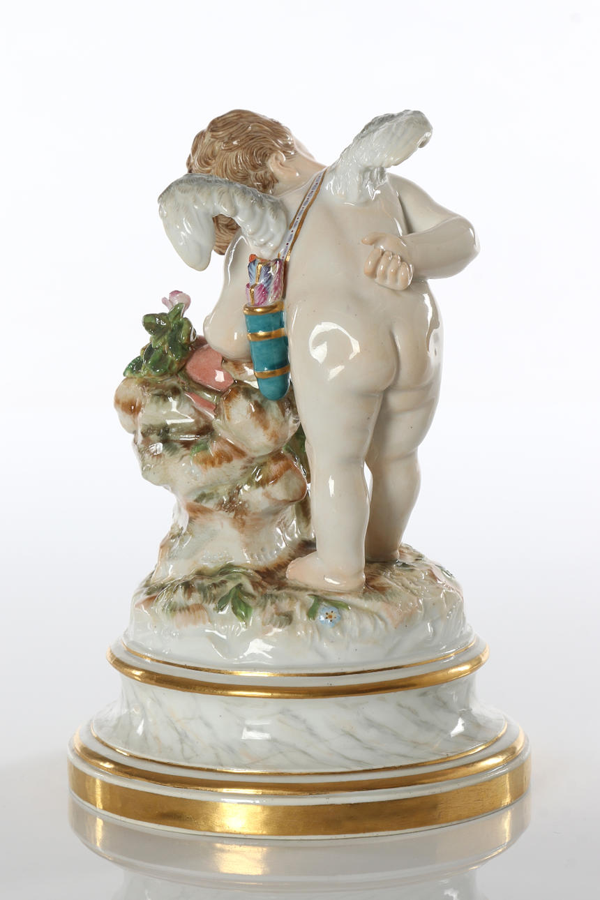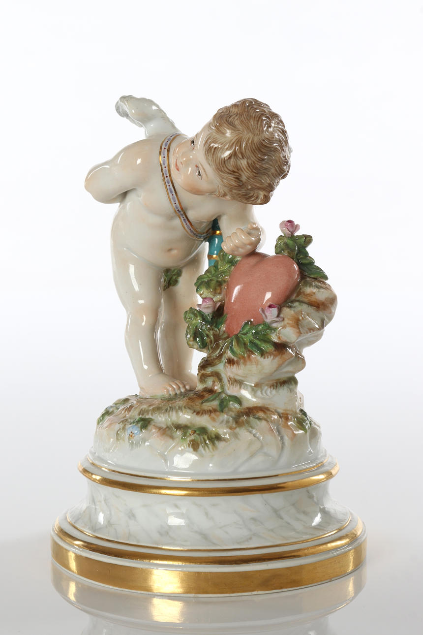 Porcelain with polychrome decor. Putto with heart. 19th century.
