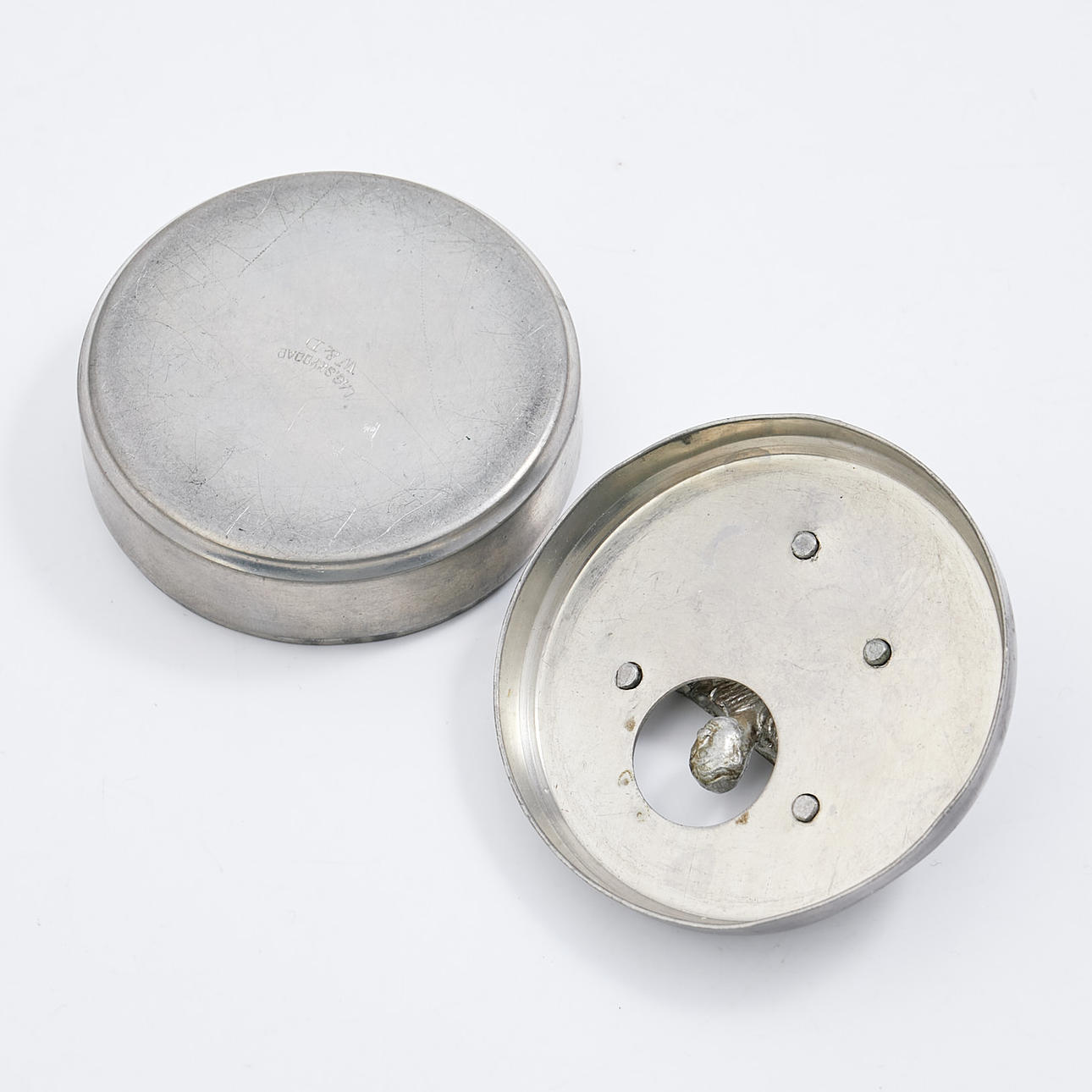 CUFF BUTTON BOX. Pewter W&D (Widerholm & Dahlberg Eskilstuna), 1900s.