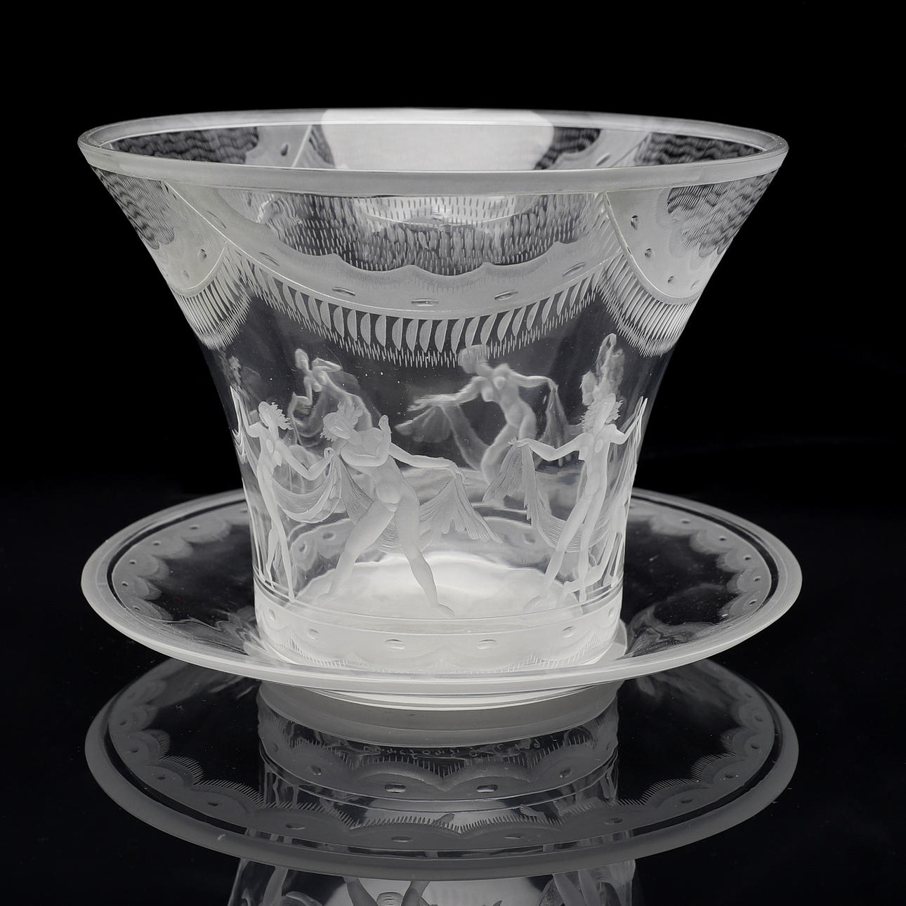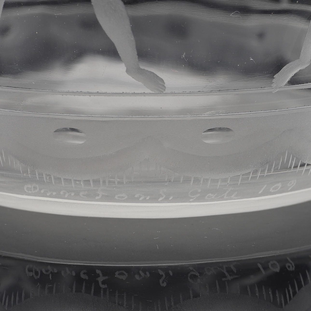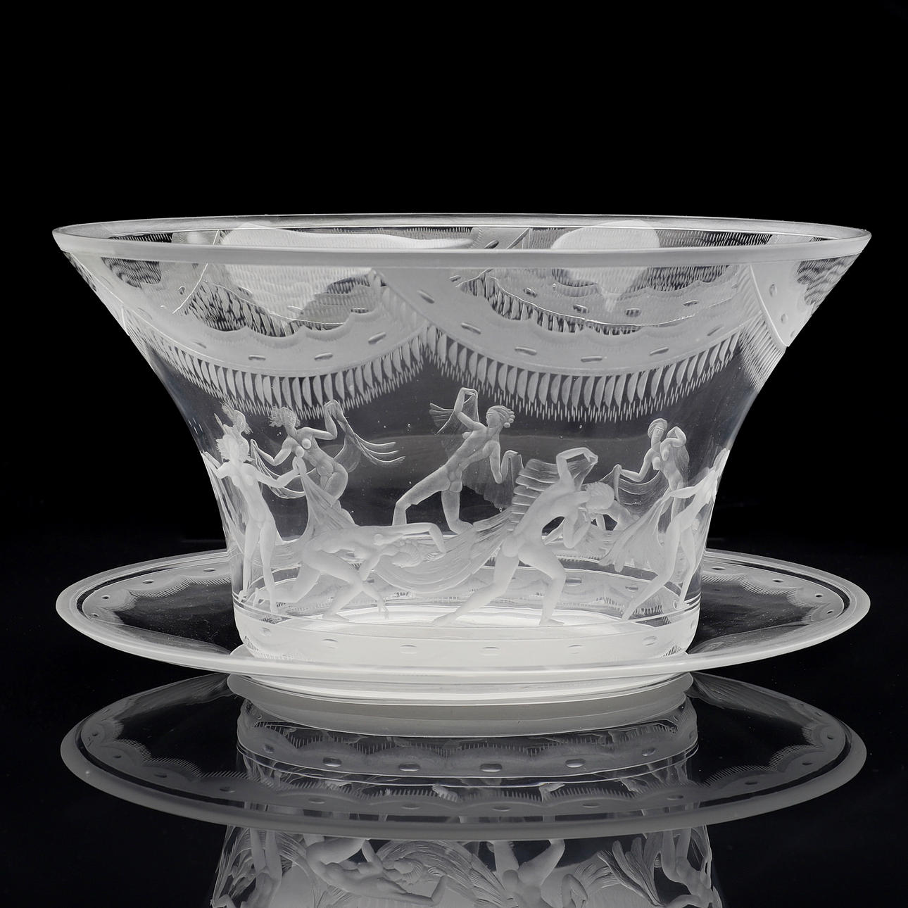 Engraved decor, signed, numbered 109, dish 22,5x17 cm, bowl height 12 cm, bowl length 22cm.