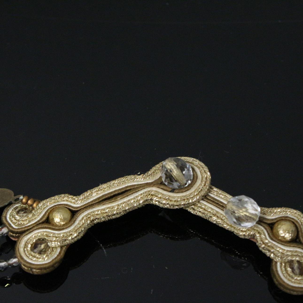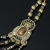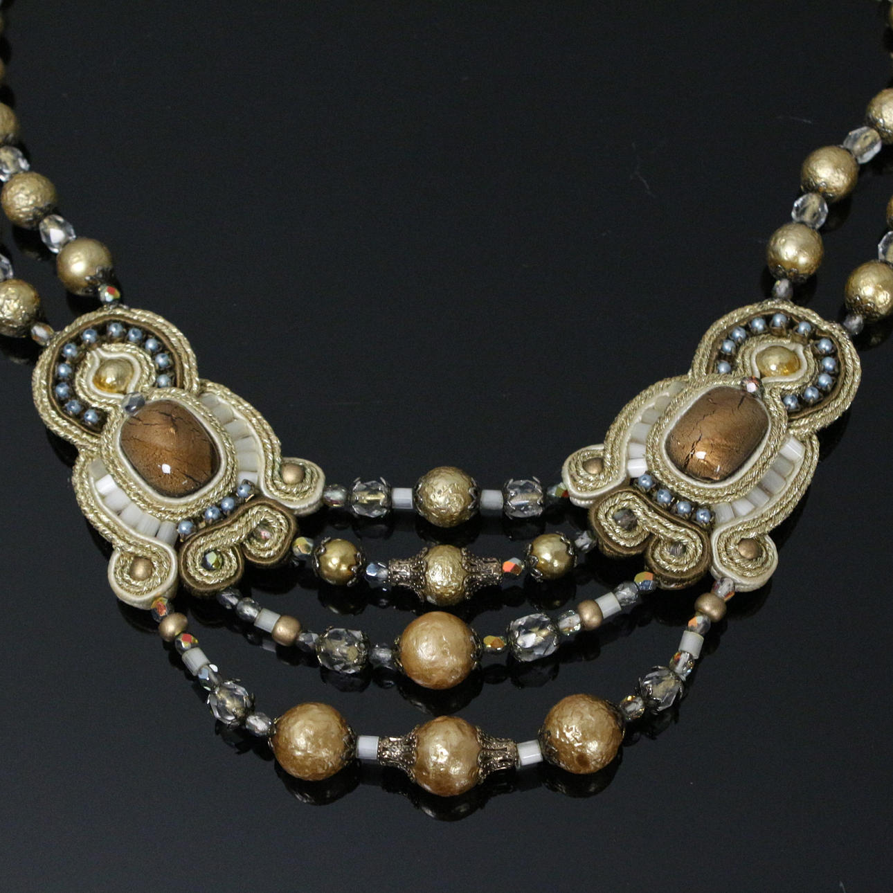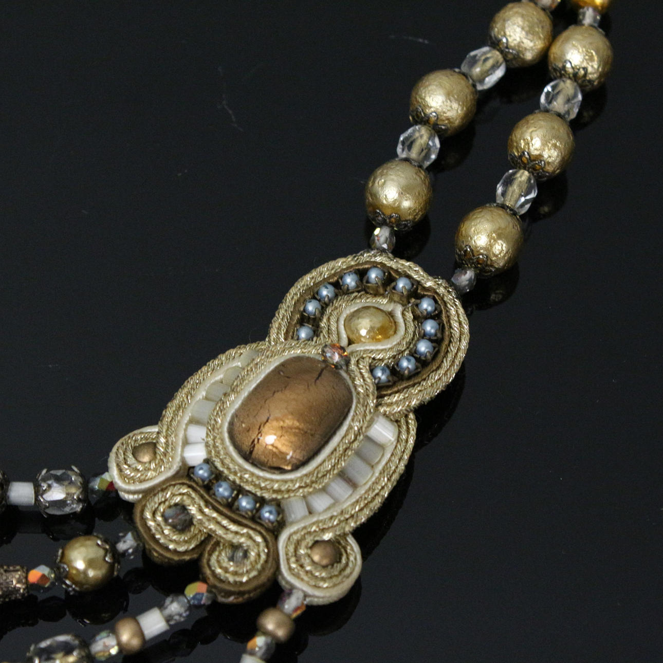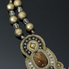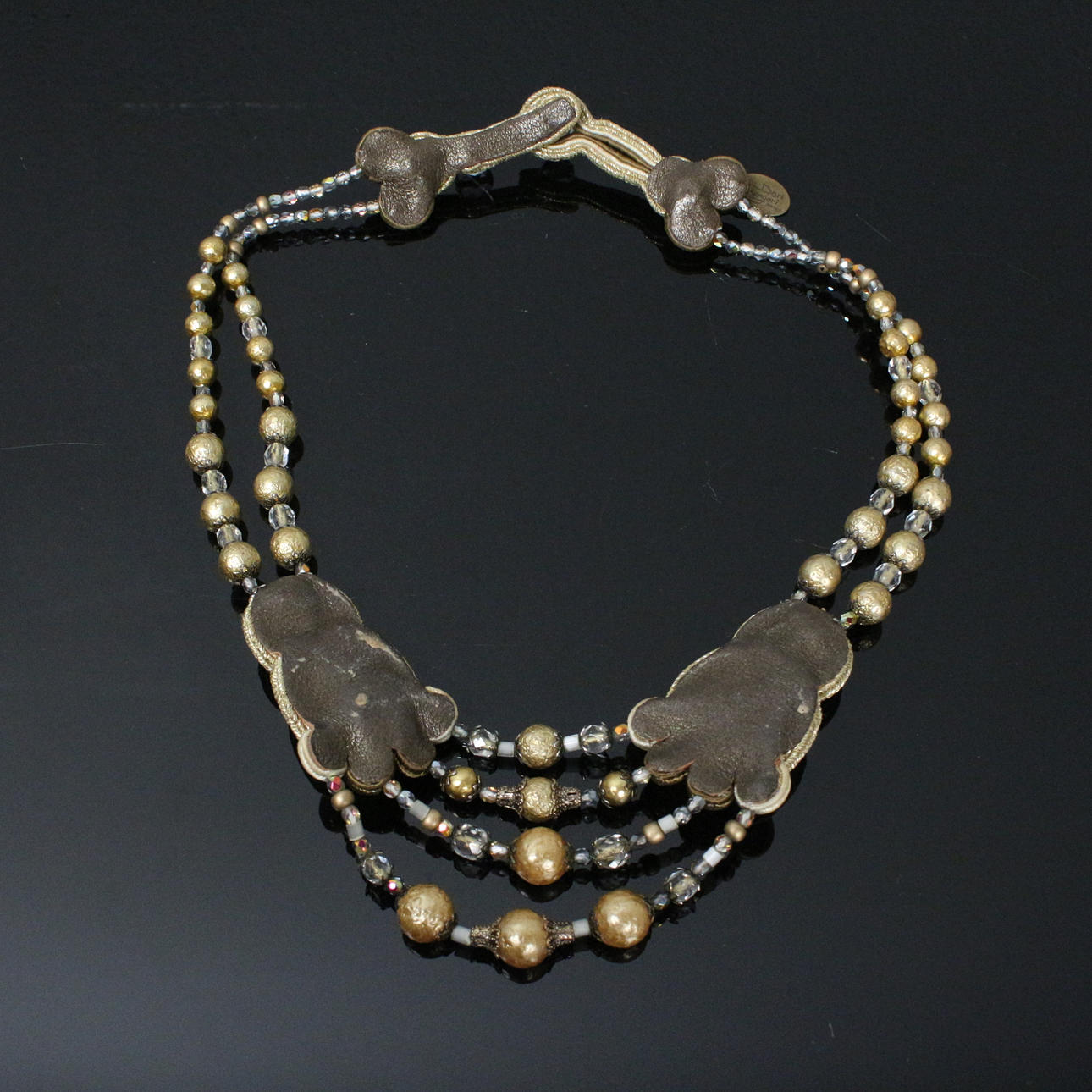 Dori Csengeri, necklace/necklace, handmade, leather, decorated with pearls and stones, embroidery technique, Length approx.: 45 cm.