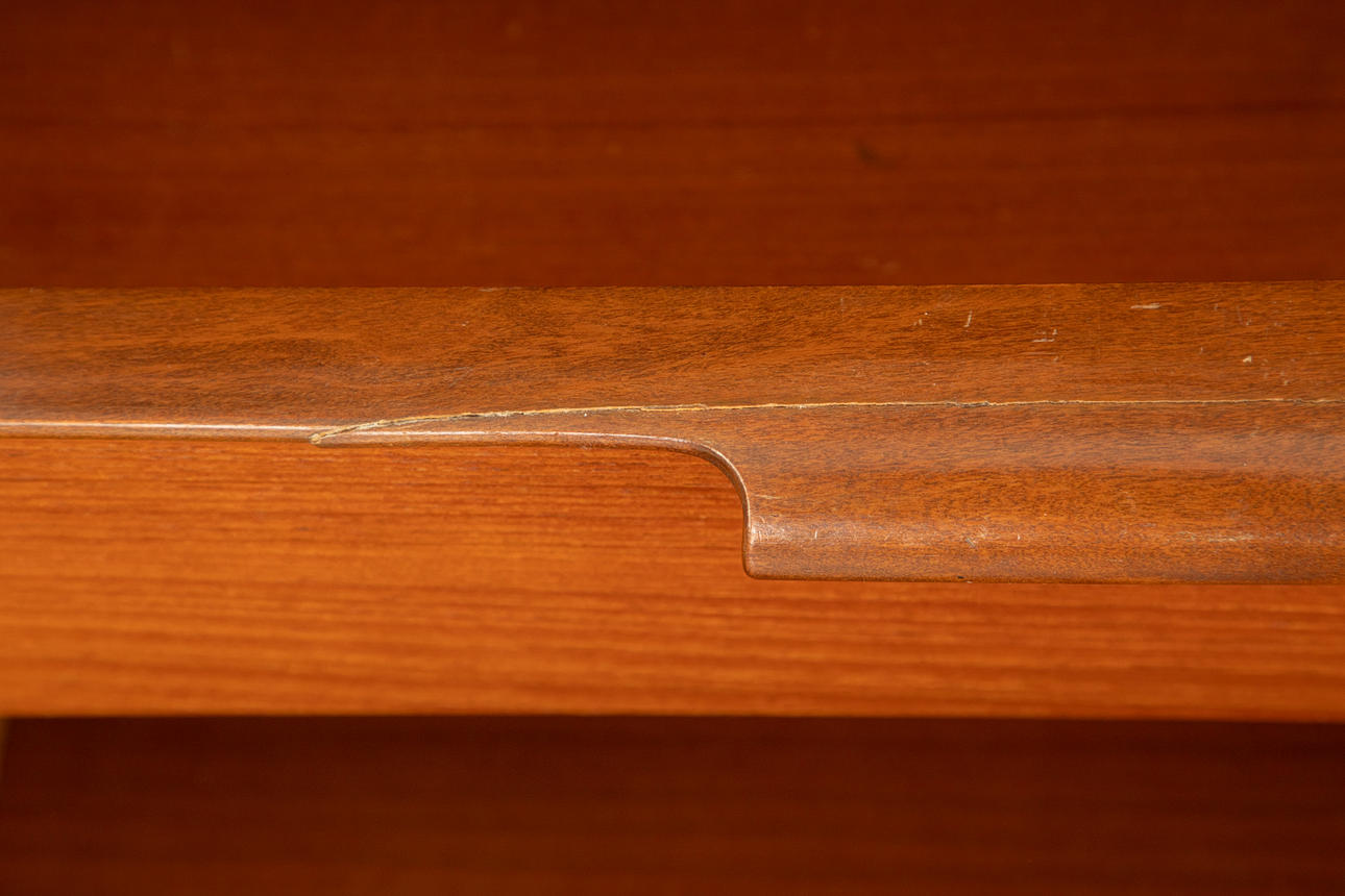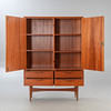 Teak veneer. 2-door, lockable. 1 key available. 4 drawers