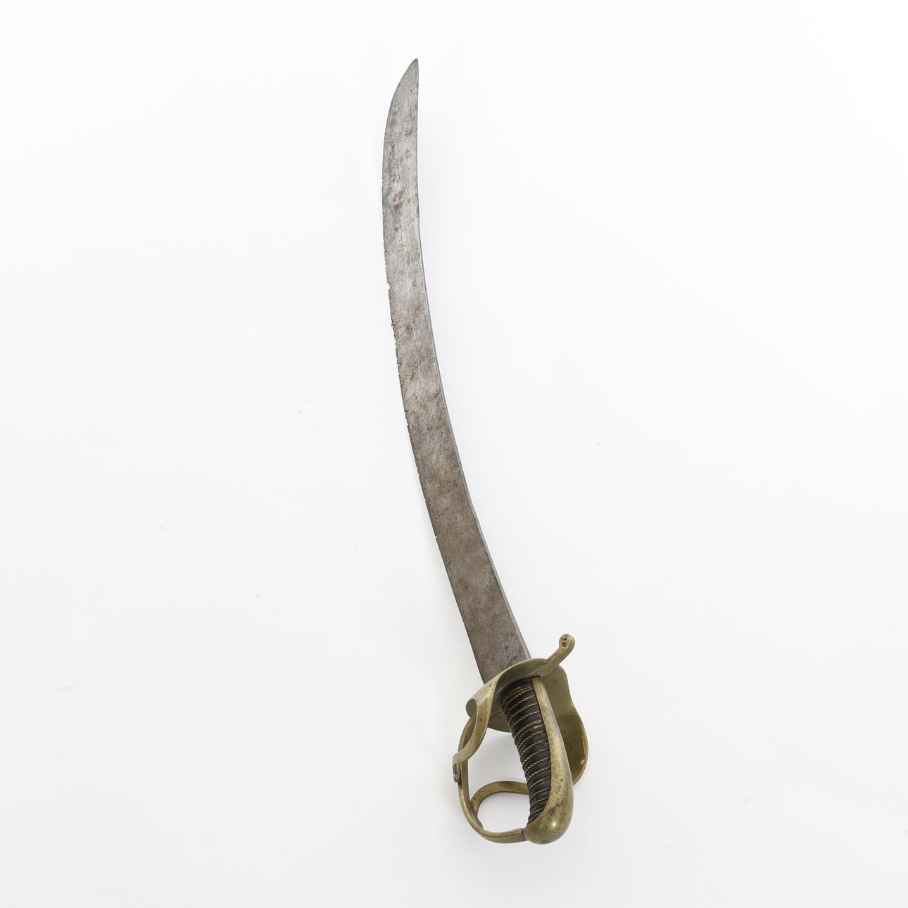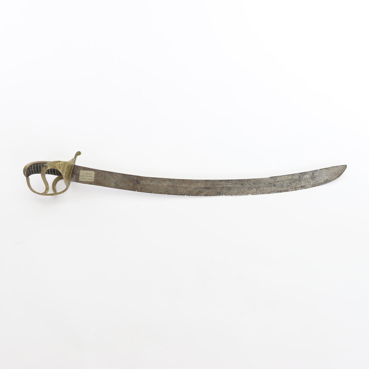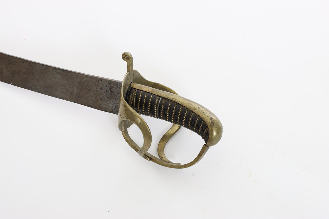 SABEL, m/1775, for the Savolax Light Infantry Regiment. Brass parer bar, leather-clad rolling pin with twisted brass wire. Single edged blade with flat back and bowl sharpening.