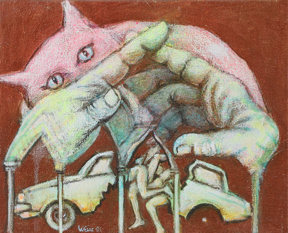 ERNST BILLGREN. Composition with yellow cat, etching, unleaved leaf.