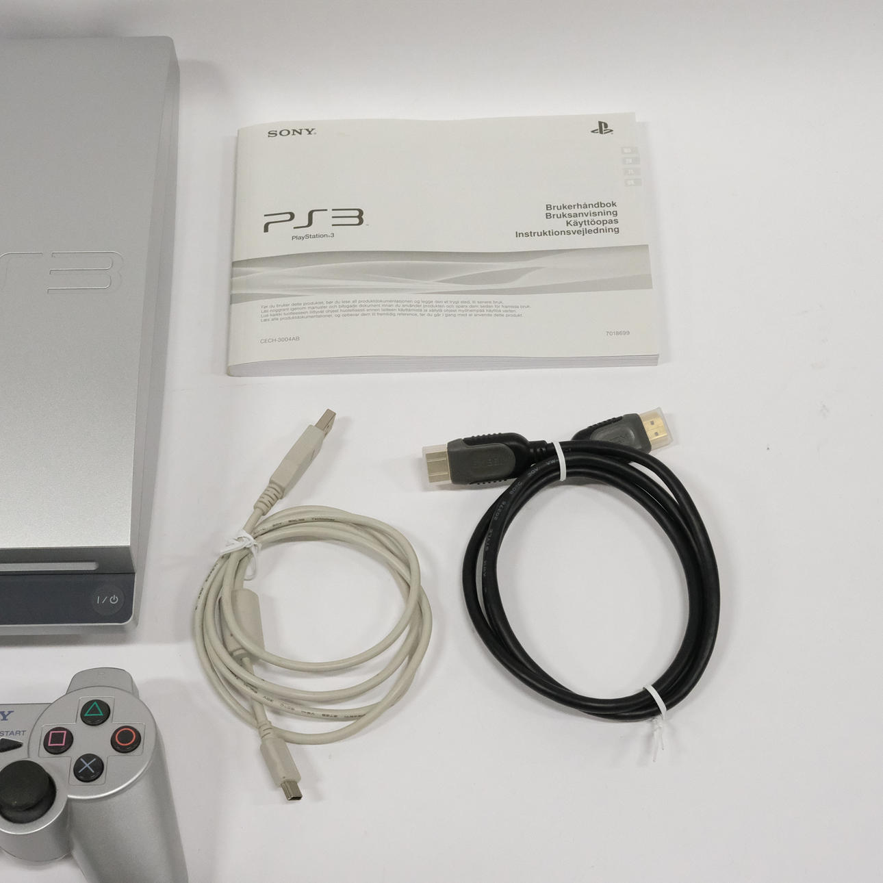 PS3, gray, model no. CECH-3004B, dimensions 6,5x29x29cm.