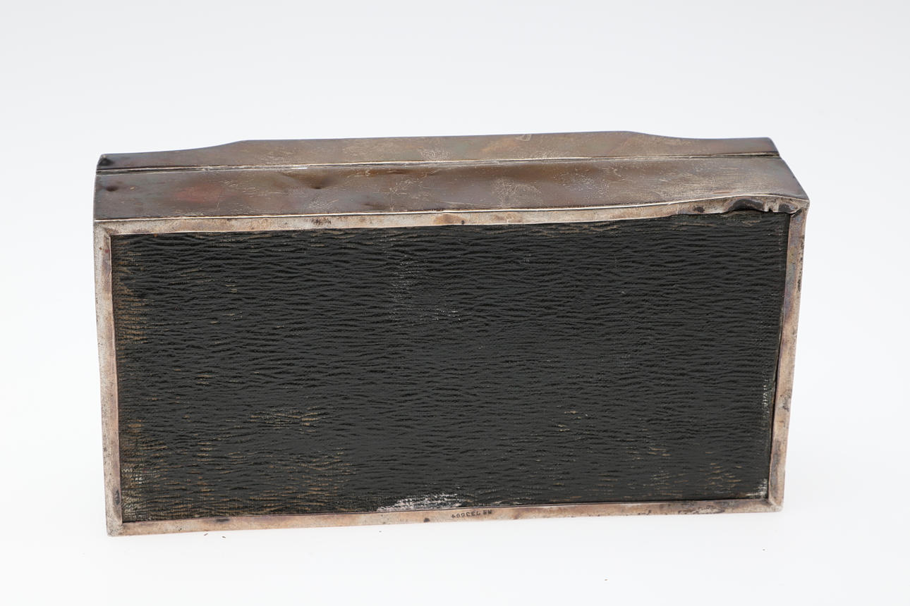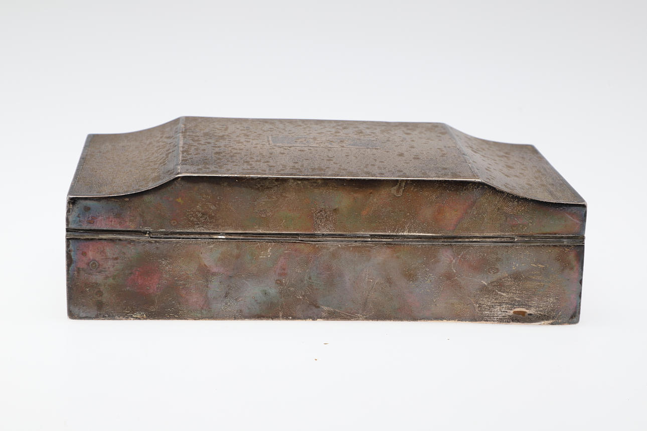 3153117. AN ENGINE TURNED SILVER CEDAR LINED CIGARETTE BOX.