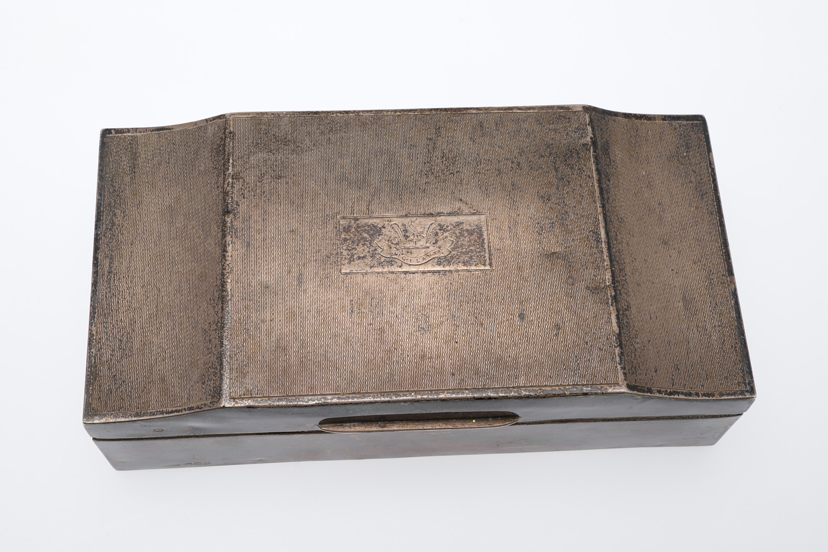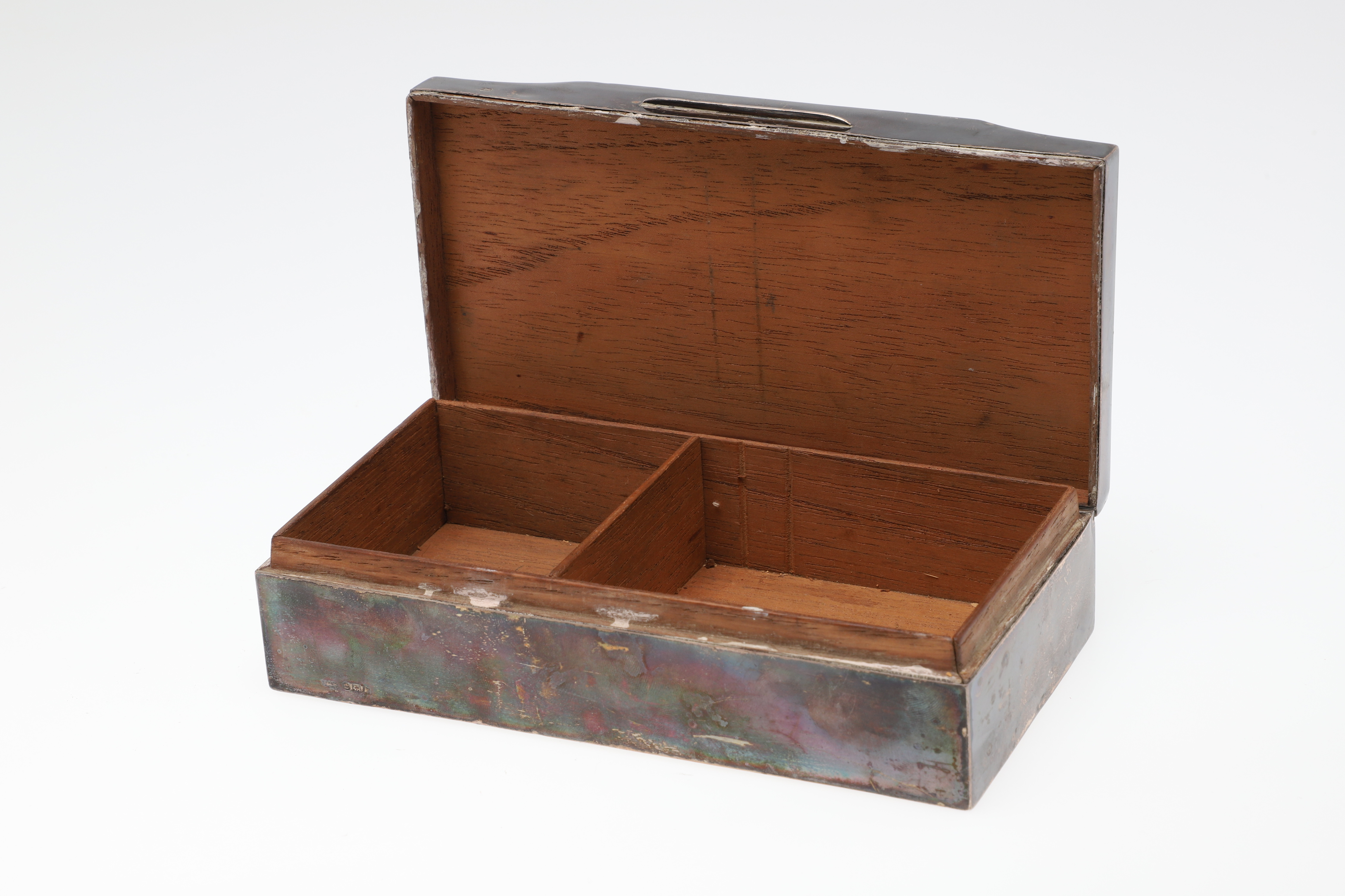 3153117. AN ENGINE TURNED SILVER CEDAR LINED CIGARETTE BOX.