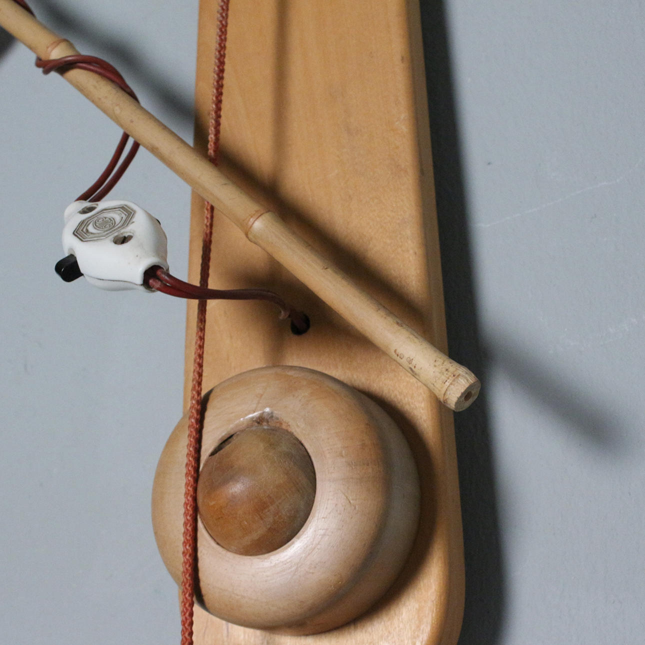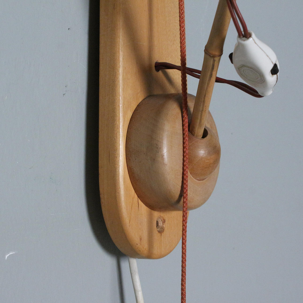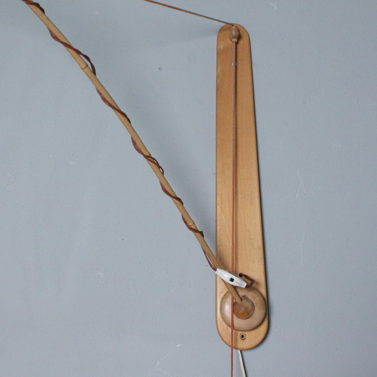 wall lamp with adjustable arm/ swivel arm, with coconut counterweight, probably filled with sand,