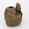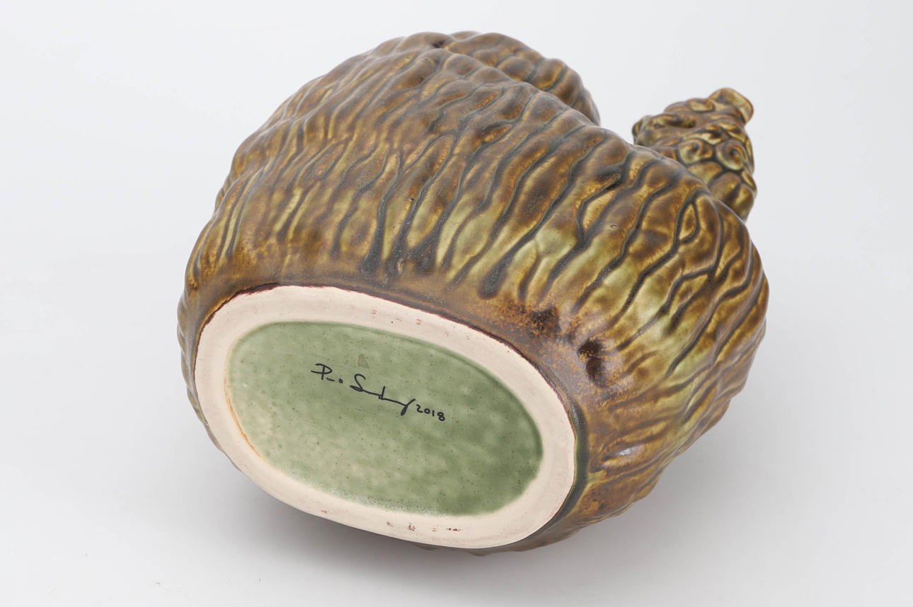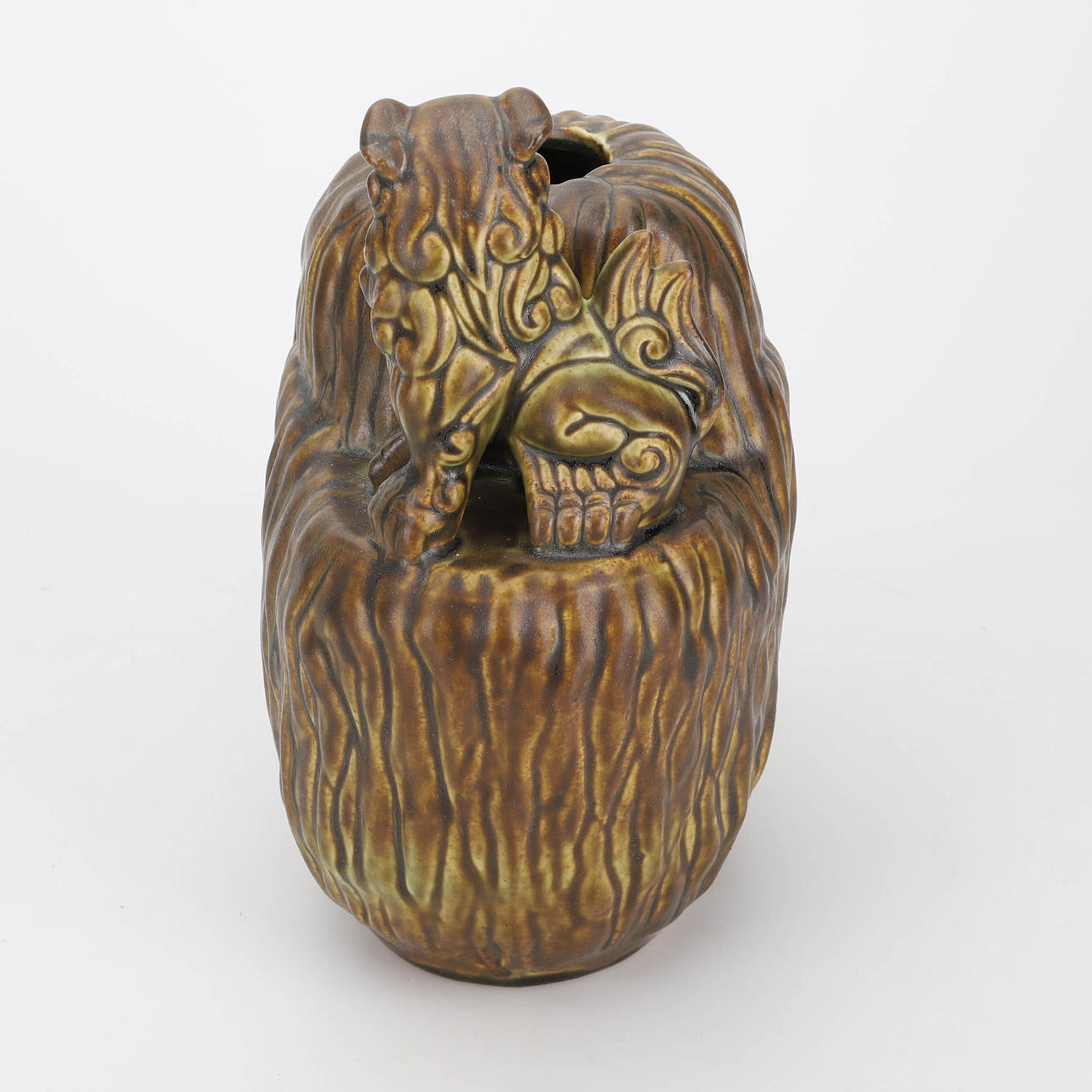 Green-brown glaze. Decoration of fohund. Label marking. Height 25 cm.