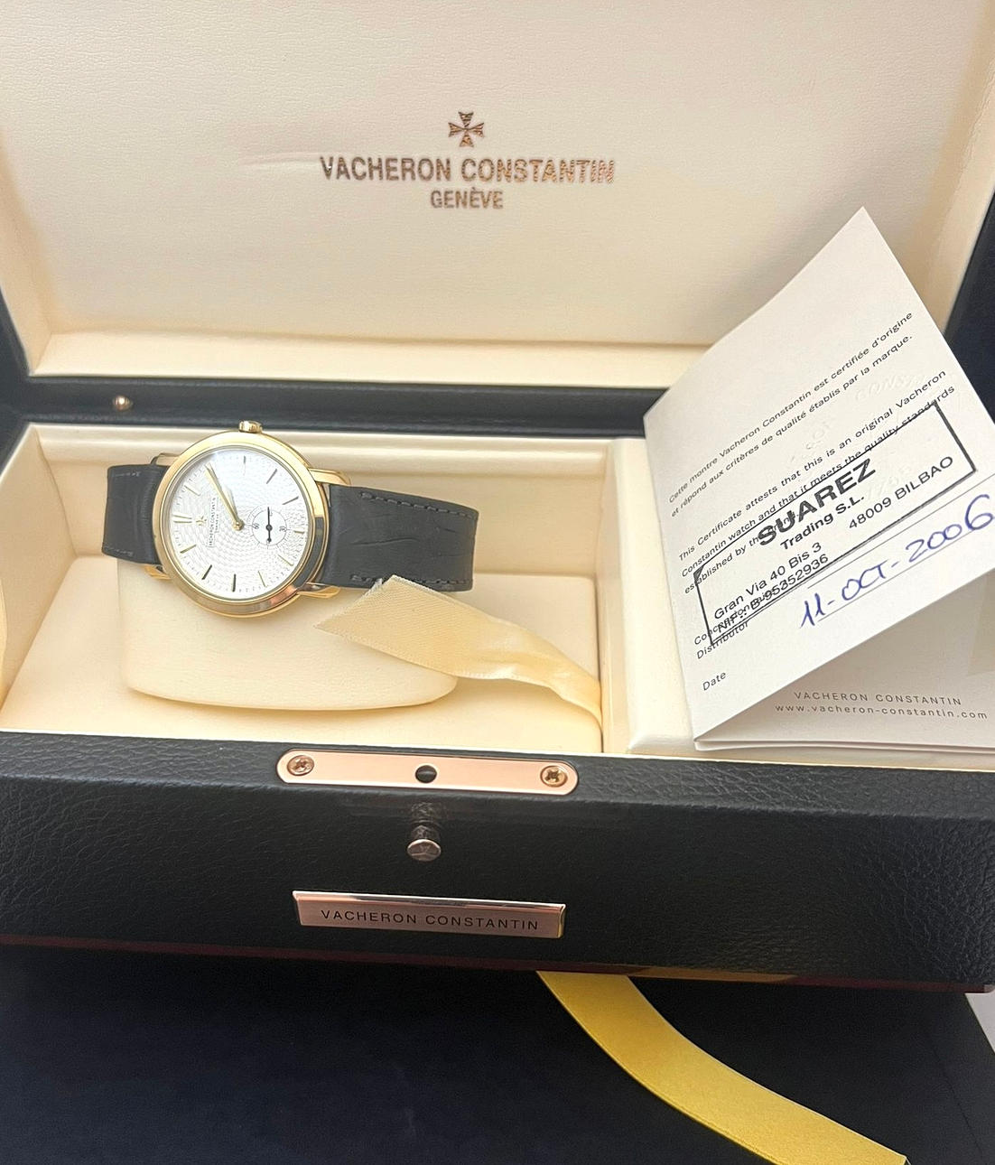 Vacheron Constantin Malte Grande Classique. 18k yellow gold case with 34mm diameter. Leather strap with folding clasp in gold, both original. Manual winding movement. Includes case and documentation.