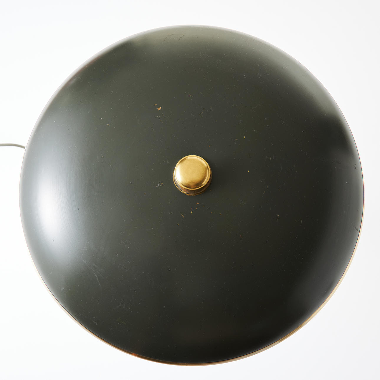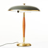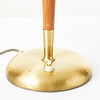 Model 8453. Base in brass and teak, plate shade, height approx. 43 cm.