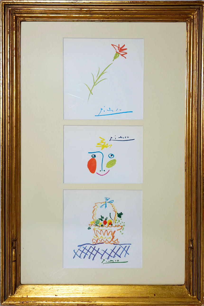 AFTER PABLO PICASSO. THREE OFFSET LITHOGRAPHS ON PAPER IN THE SAME FRAME.