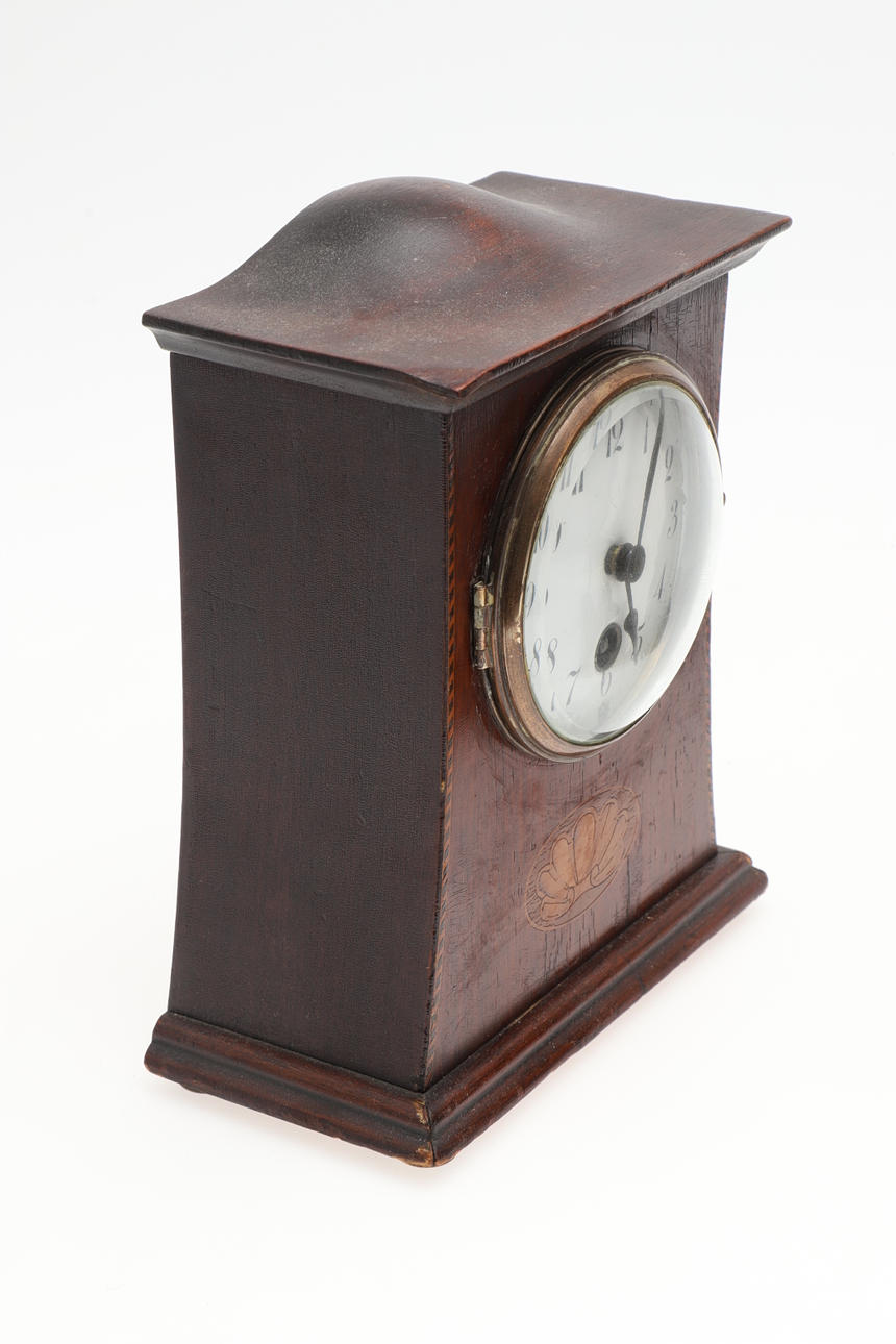 Not tested for function, both cases seem in generally good condition. Edwardian clock, white enamel dial has a small chip around the screw, a few small cracks to the surface over time.