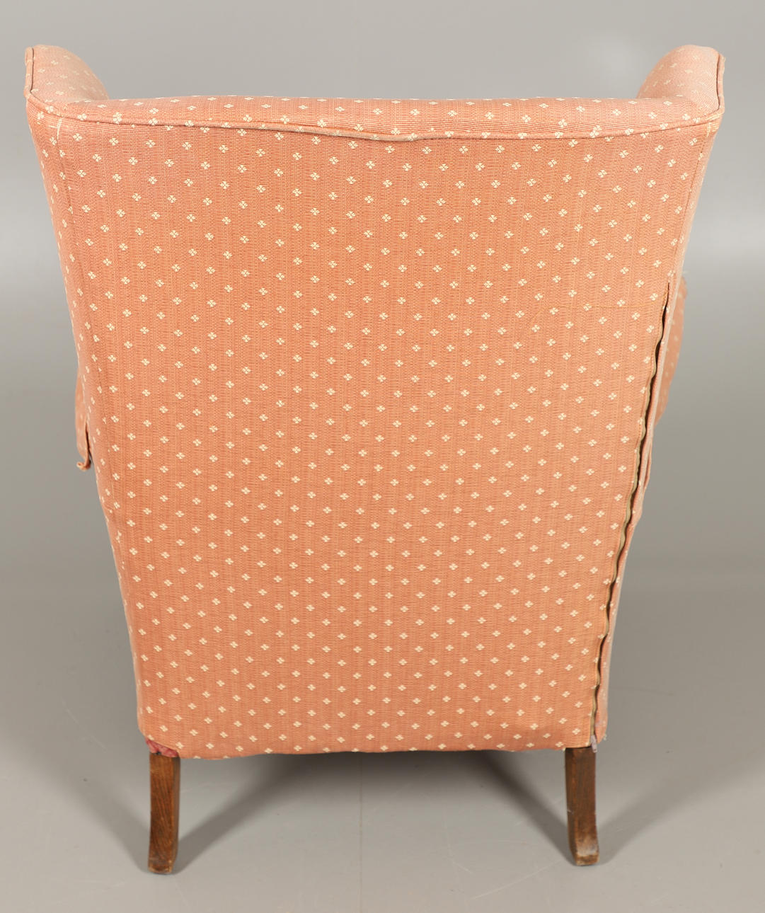 General wear, scratches and marks to the wood. Upholstery is faded and stained in places, with some damages.