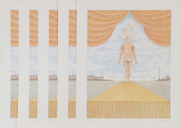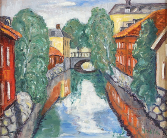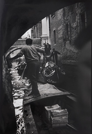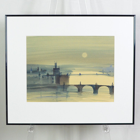 Signed and dated lower right: Simonelli 2004. Inscribed lower left: "Rialto". Handwritten in Italian on the verso. Framed under glass in a passee-partout. dimensions approx. Frame 49 x 43 cm, passepartout 34 x 27 cm.