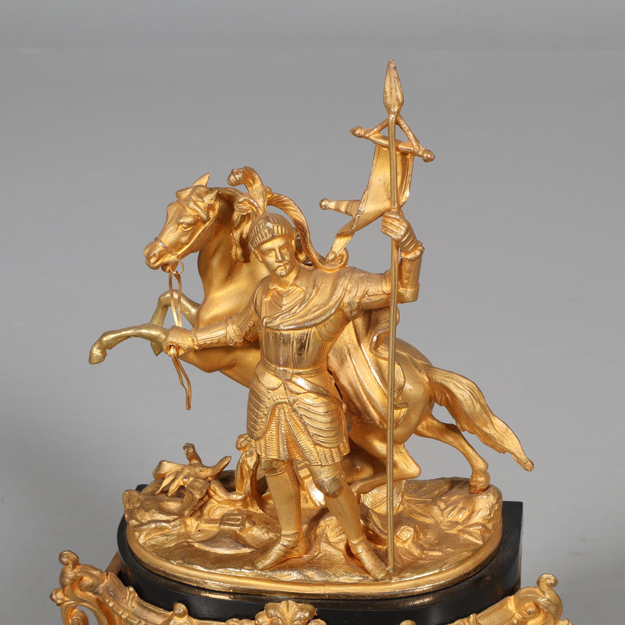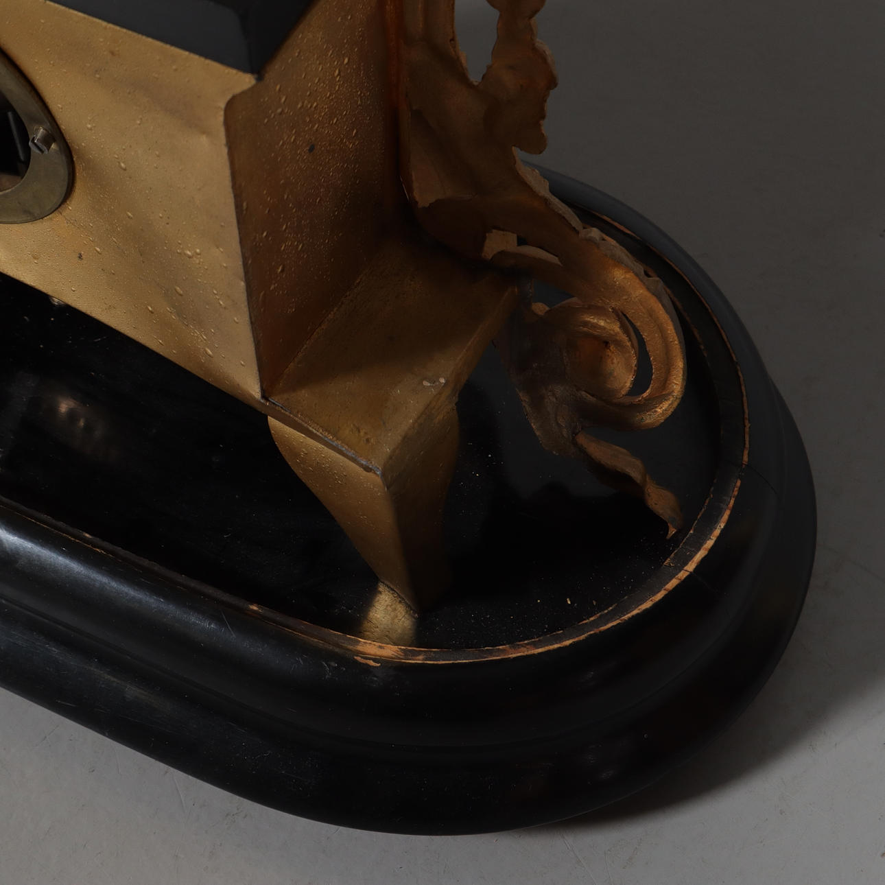 On wooden plinth, with glass cover. Height, incl. plinth about 50 cm.