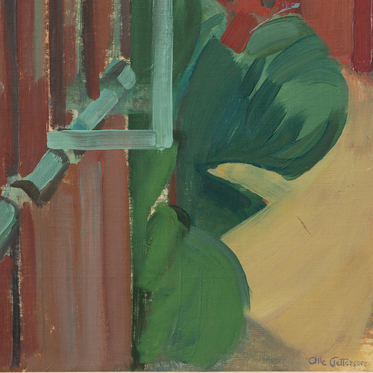 Olle Pettersson studied at Valand from 1930 to 1931 under Sigfrid Ullman who took over after Tor Bjurström. Like his generational peers, colour takes centre stage even though his painting is in a more restrained colour scheme.