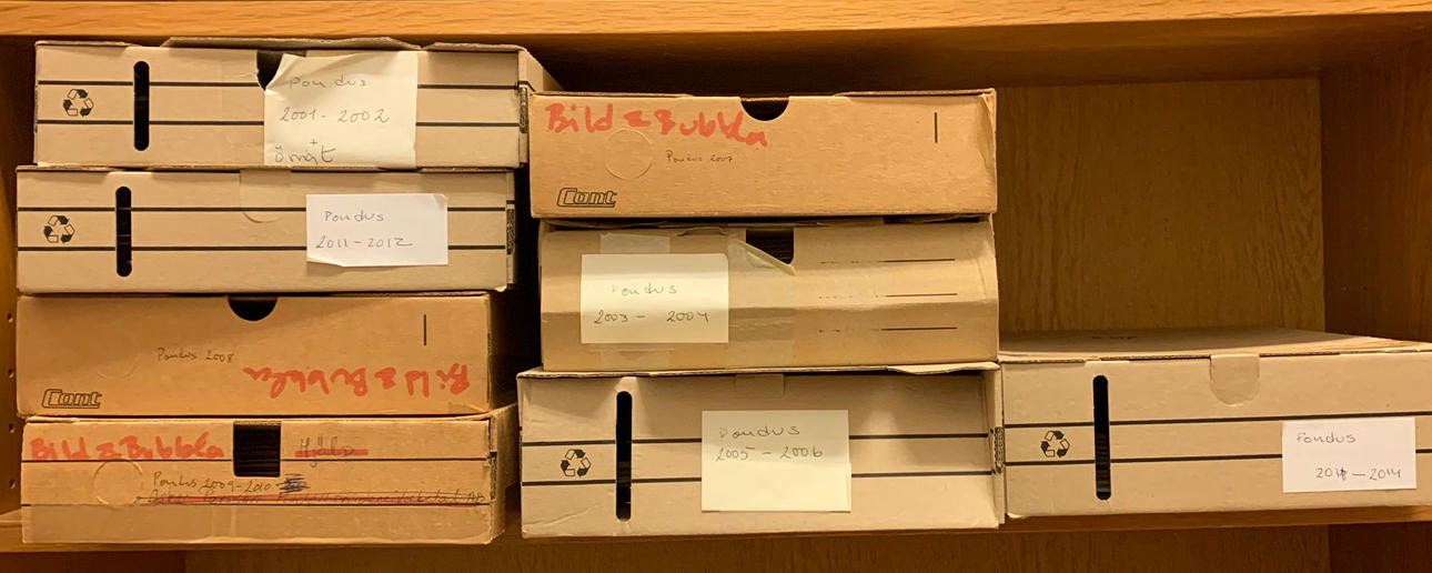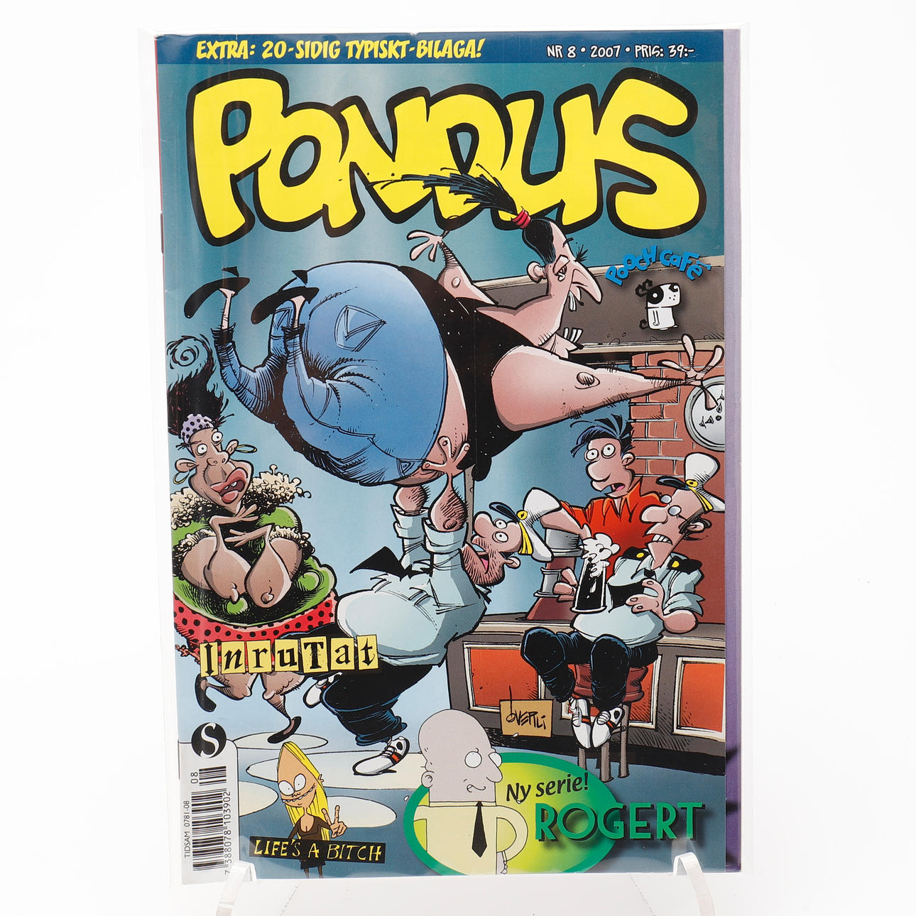 Comic books. The comic book Pondus in complete vintages from 2001-2014. About 70-80 magazines in 4:o format with illustrated covers. Full Stop Media, (later Schibsted), 2001-2014. All newspapers in plastic pockets and stored in eight (8) brown cartons.