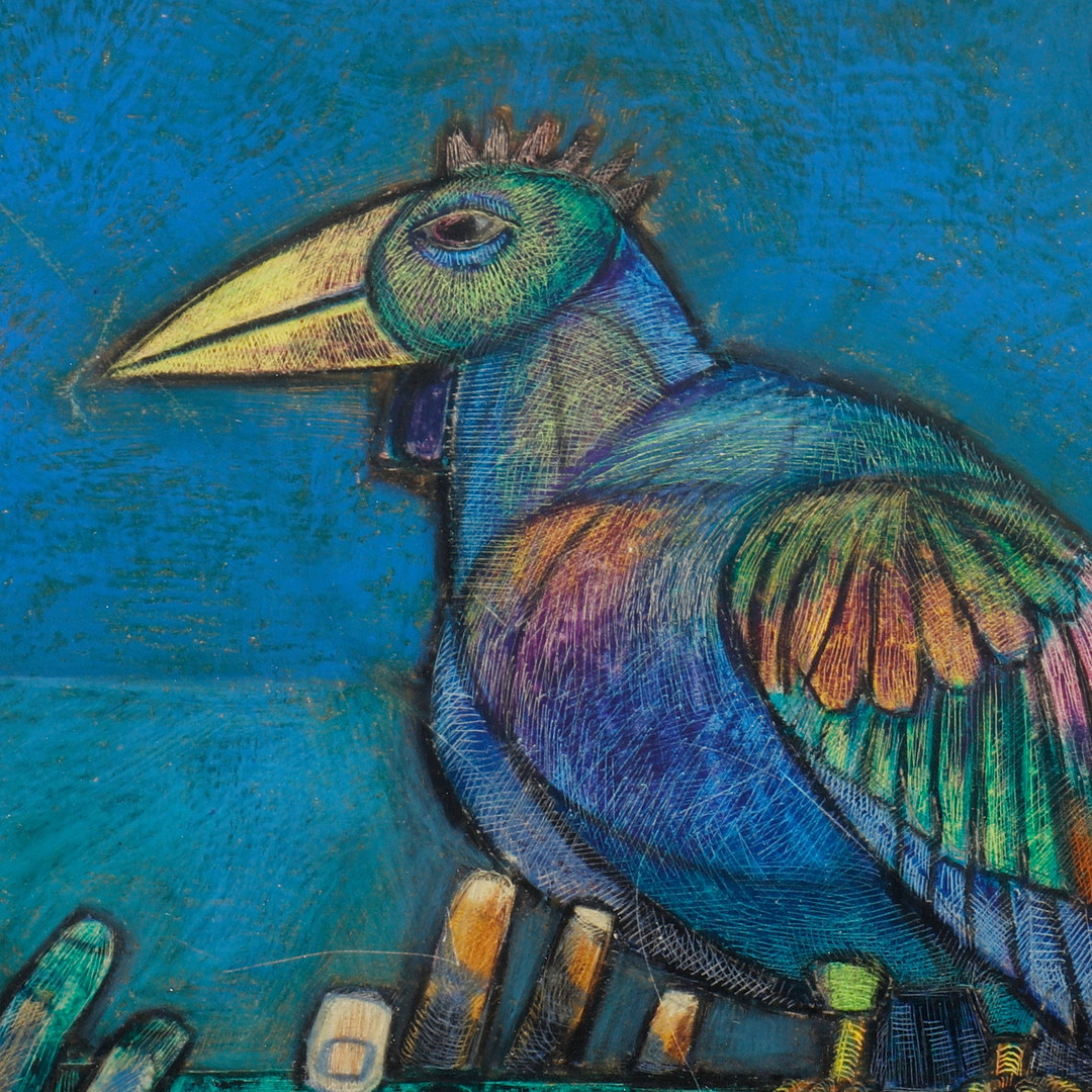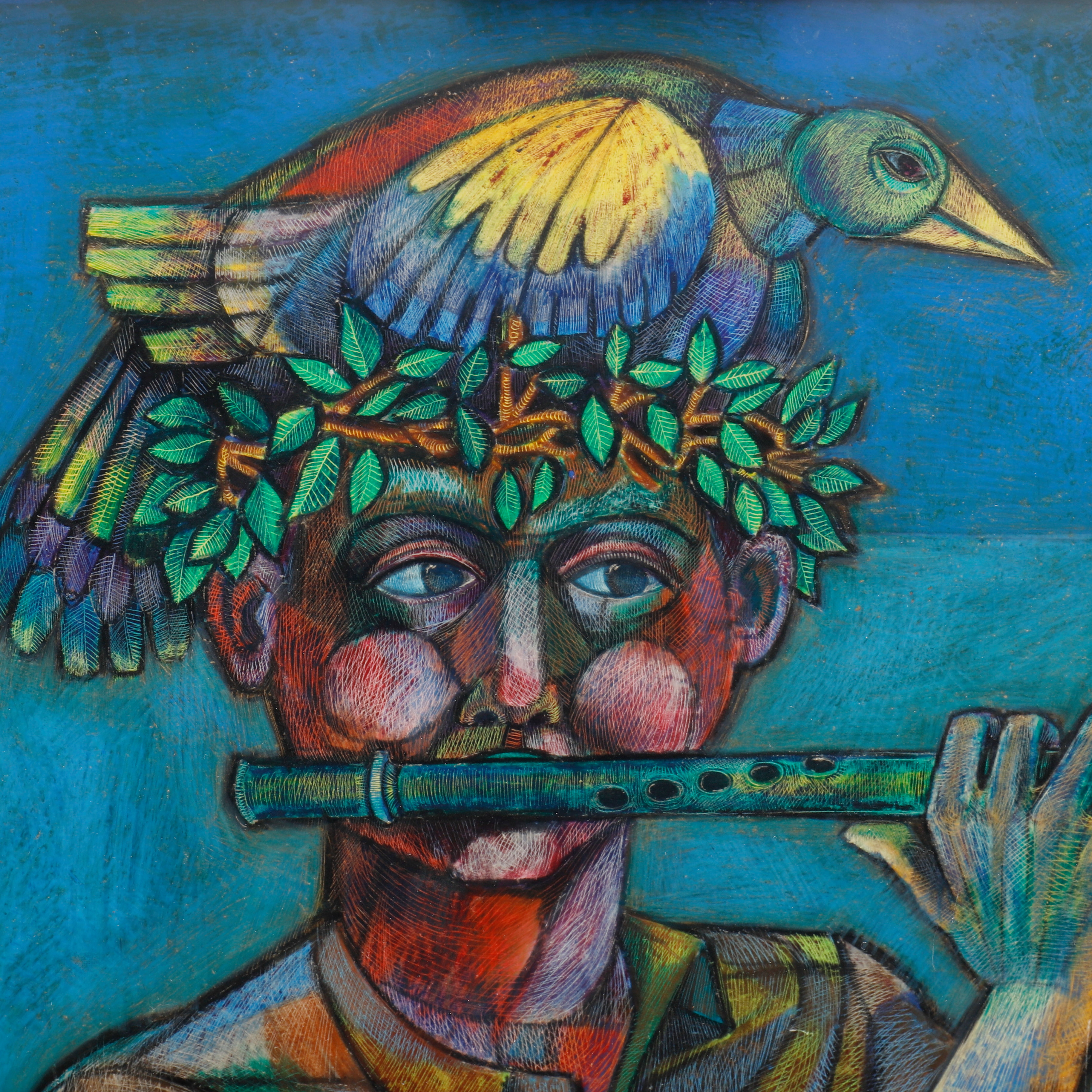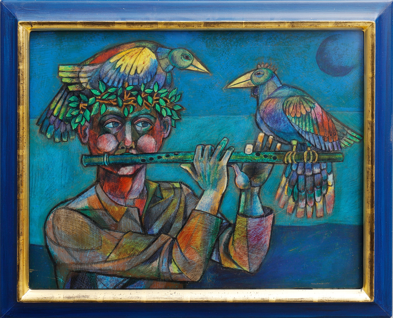 3170940. HANS BLOMQUIST. FLUTE PLAYER WITH BIRDS.