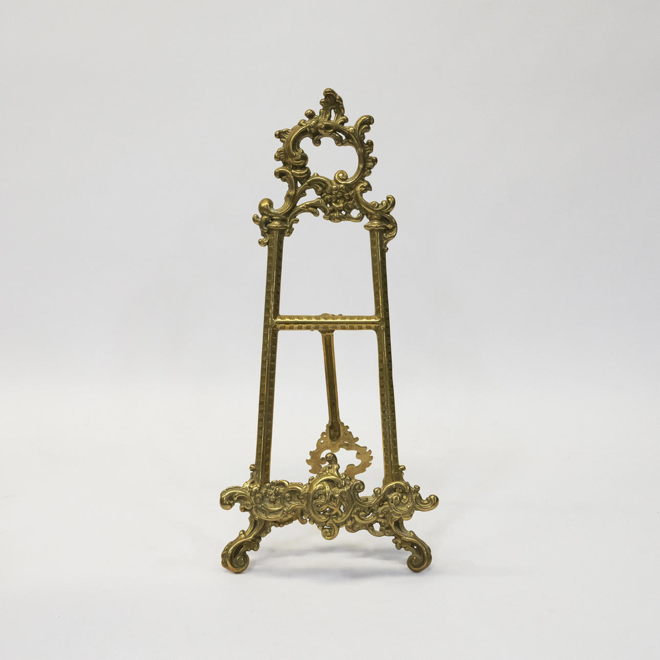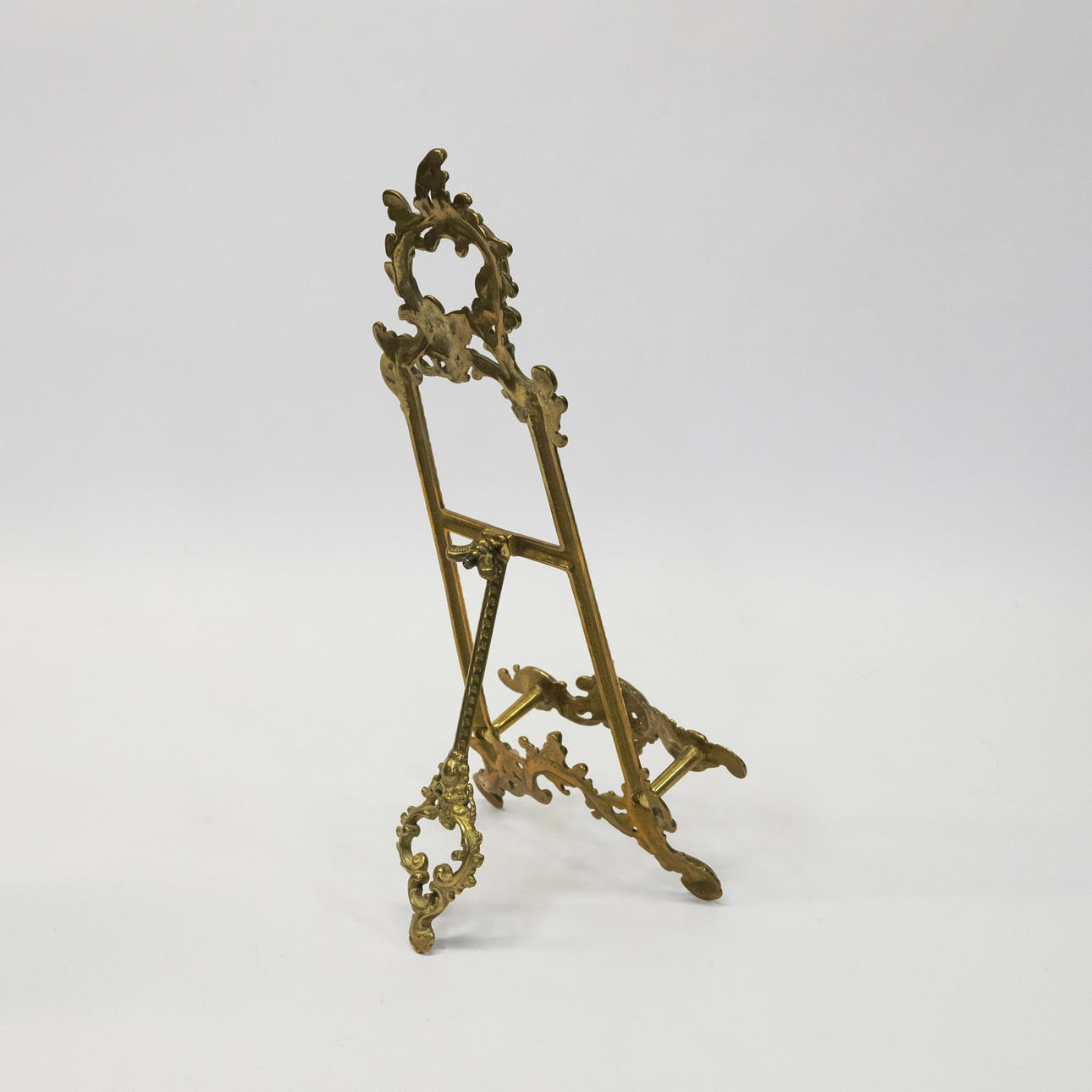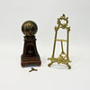 Table clock in wood and metal, Art Nouveau style, works marked: Junghans, height 28cm, key available. Brass frame/stand, height 33cm.