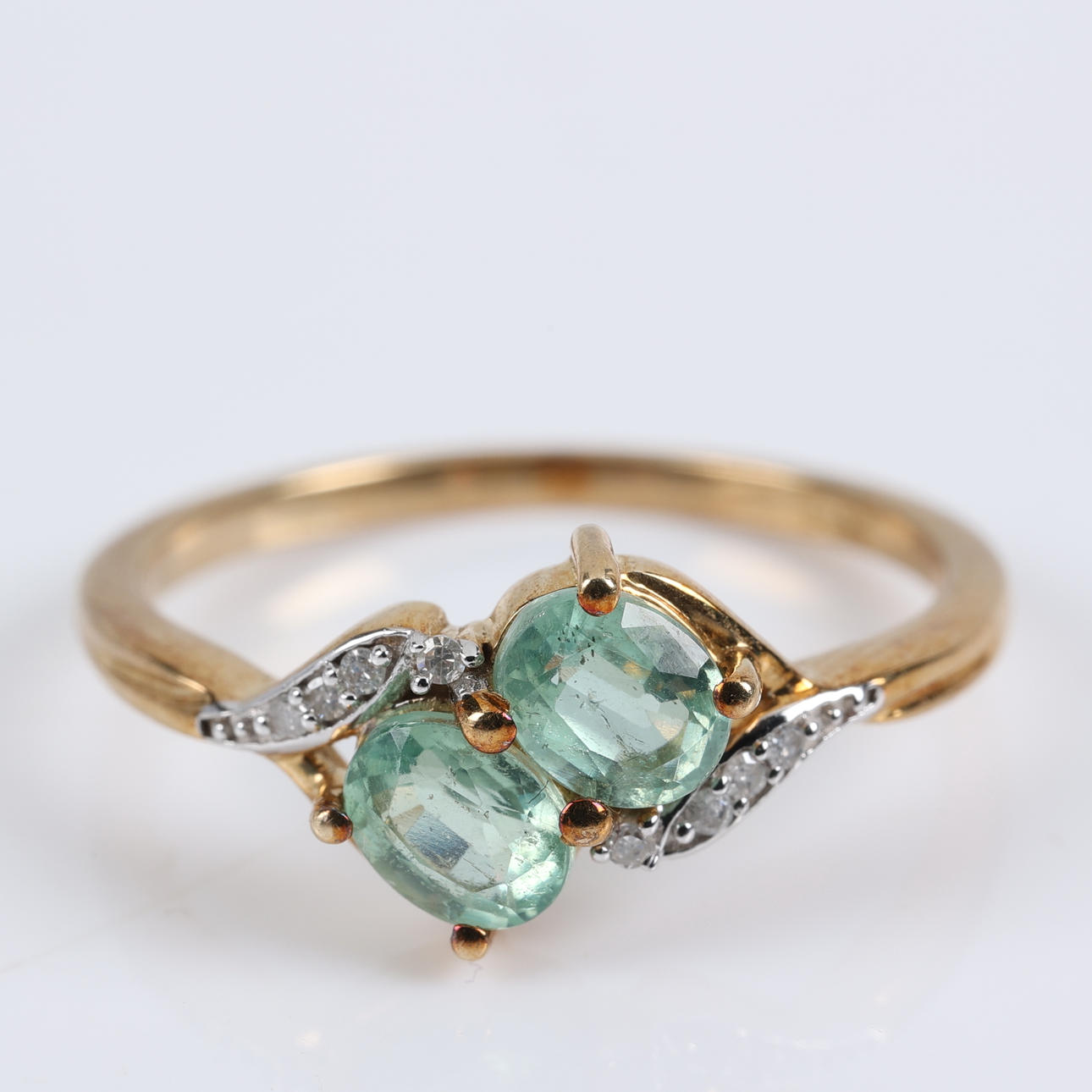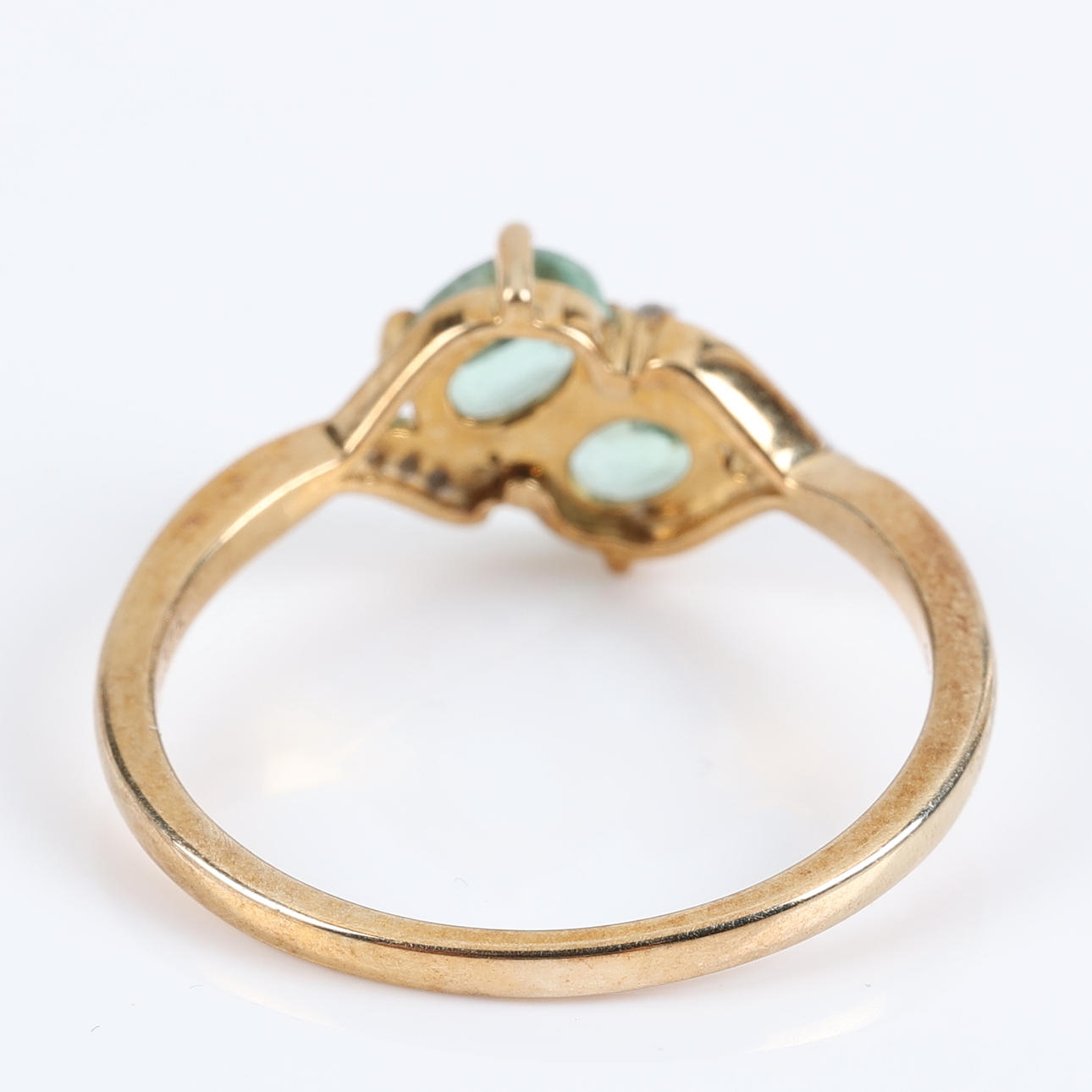 Ring in 9K gold with oval cut emeralds and round cut diamonds