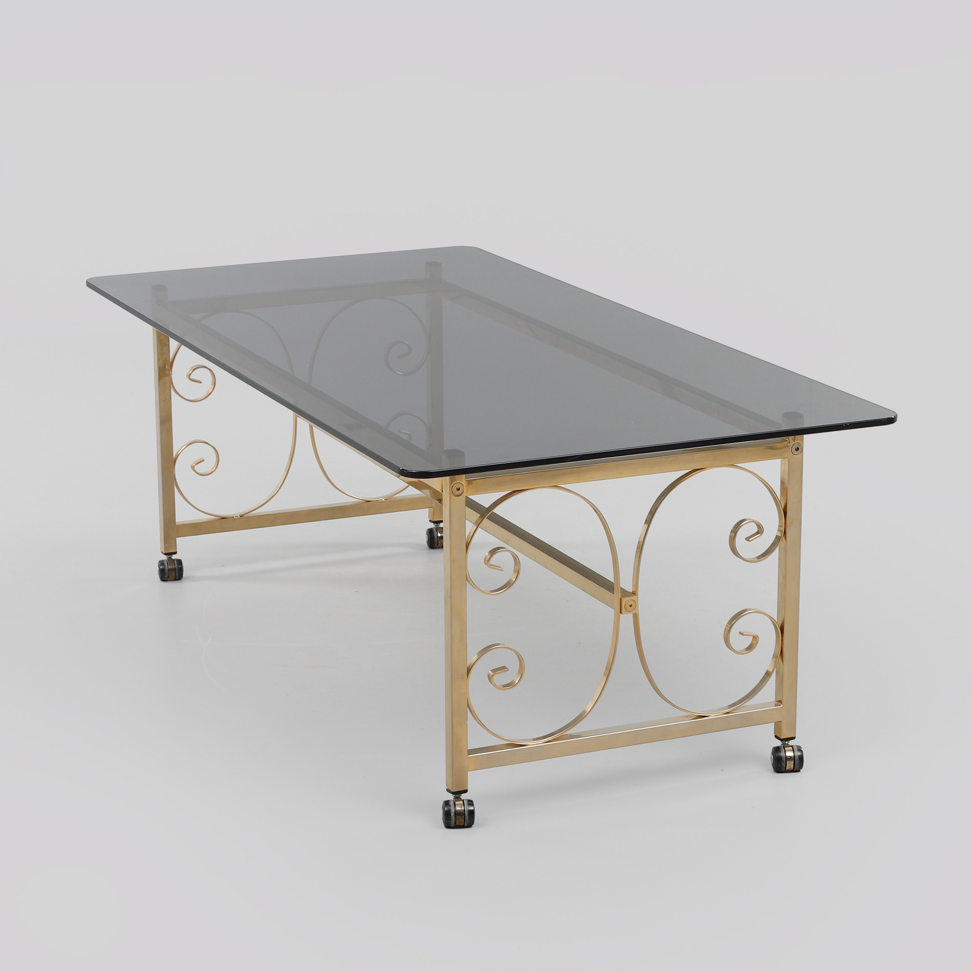 3172788. COFFEE TABLE, glass and brass.