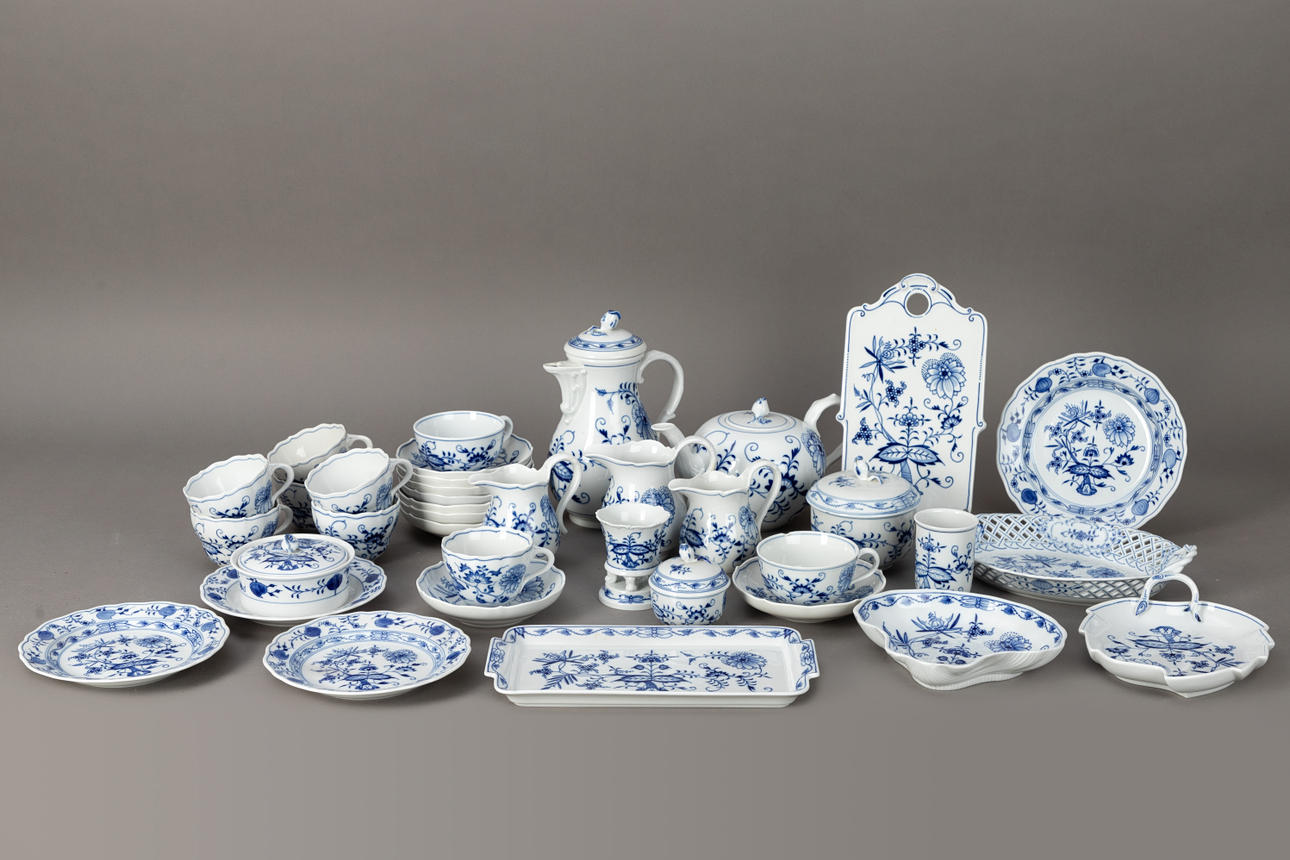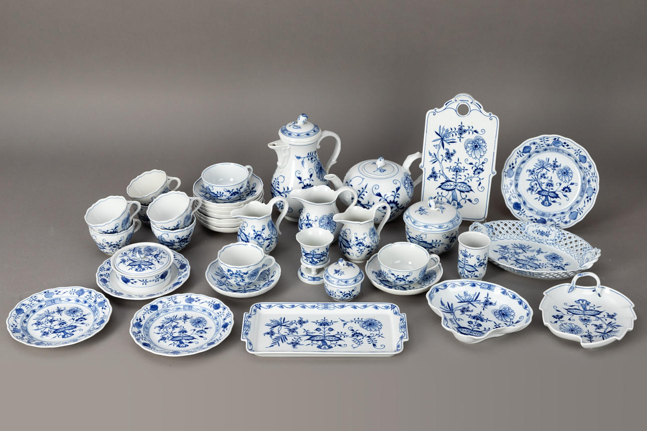 3173430. MEISSEN. Coffee/tea set, onion pattern, 20. century (36).