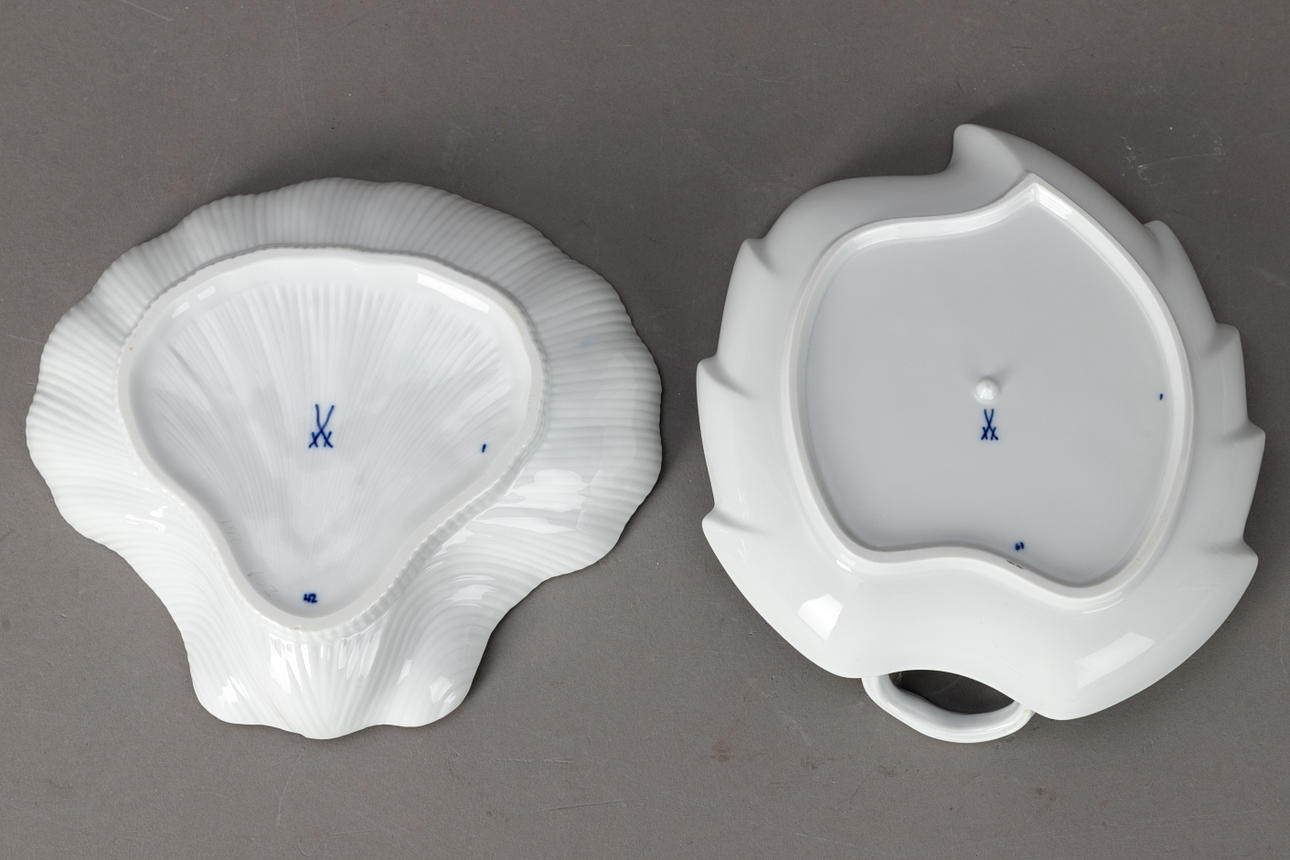 36-piece set, consisting of 1 coffee pot (double sanded), 1 teapot, 2 tea cups (1×2 times sanded, scuffed on the edge), 7 coffee cups (1xHutschenreuther, 3×2 times sanded), 9 UT. (sanded 6x2 times, brushed 4 times), 1 milk jug (sanded twice), 2 cream pourers (sanded 1x2 times), 1 gr. Sugar lid jar (double cut), 1 small sugar bowl, 3 cl. Plates in various sizes (sanded 1x2 times), 1 cup vase, 1 foot vase, 1 long Shelf (double sanded), 1 bread boards, 1 basket bowl, 1 mussel shell, 1 leaf bowl and 1 jam box.