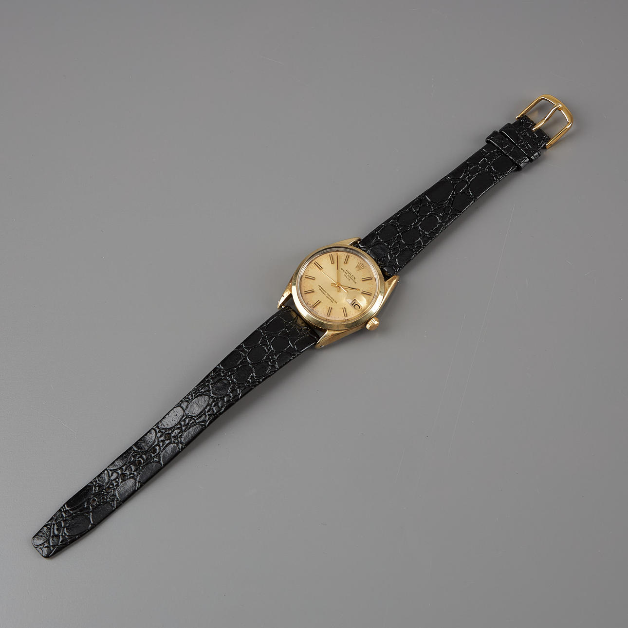 3175262. ROLEX, Date, 35 mm, gold plated, automatic, plastic crystal, c. 1970.