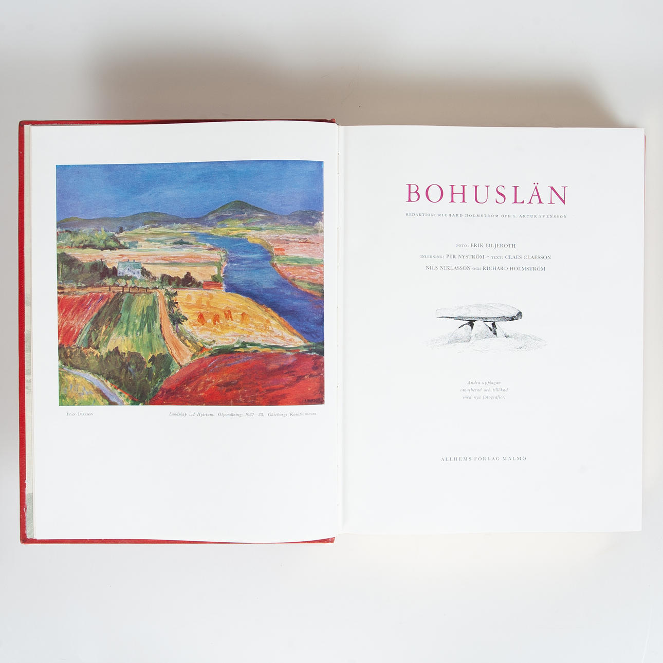 *Claesson/Niklasson/Holmström Photo Erik Liljeroth - Bohuslän - A work of art. Bibliophile edition No. 23/333. 2nd ed. A graphic sheet by C.T. Holmstrom. Allhems Förlag 1956. Publisher's red leather strap with gold cut and cassette. Very good condition