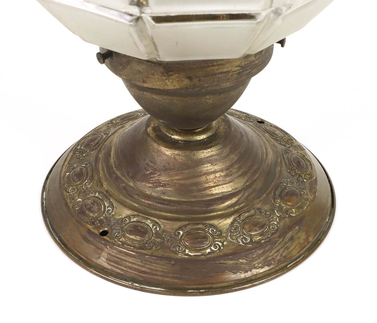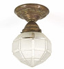 Art deco ceiling lamp with frosted glass shade, brass socket, total length 25 cm, diameter approx. 17 cm, around 1925.
