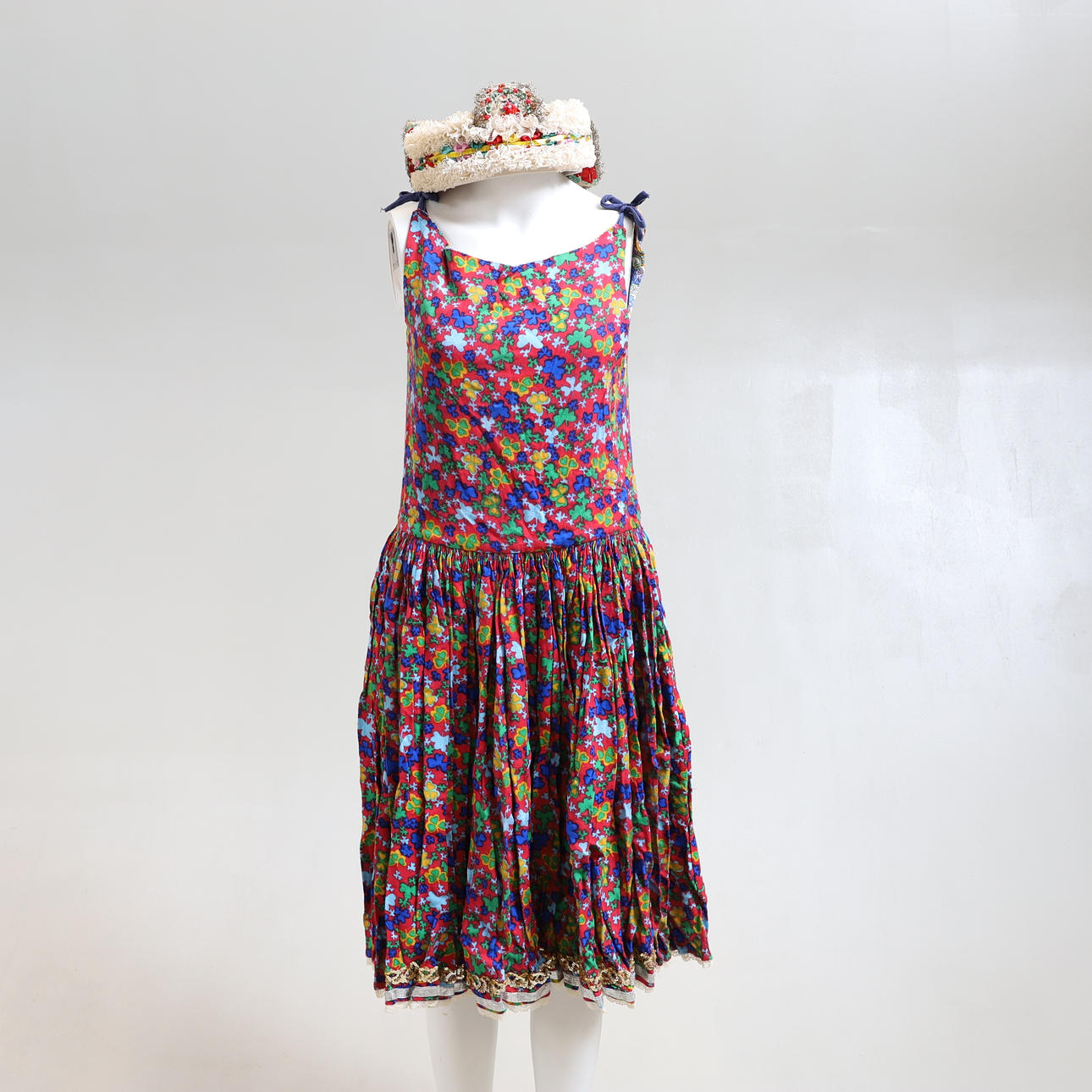 Among other things, dress, shawl, headdress and ribbon. Width across bust about 30 cm. Height dress about 95 cm.