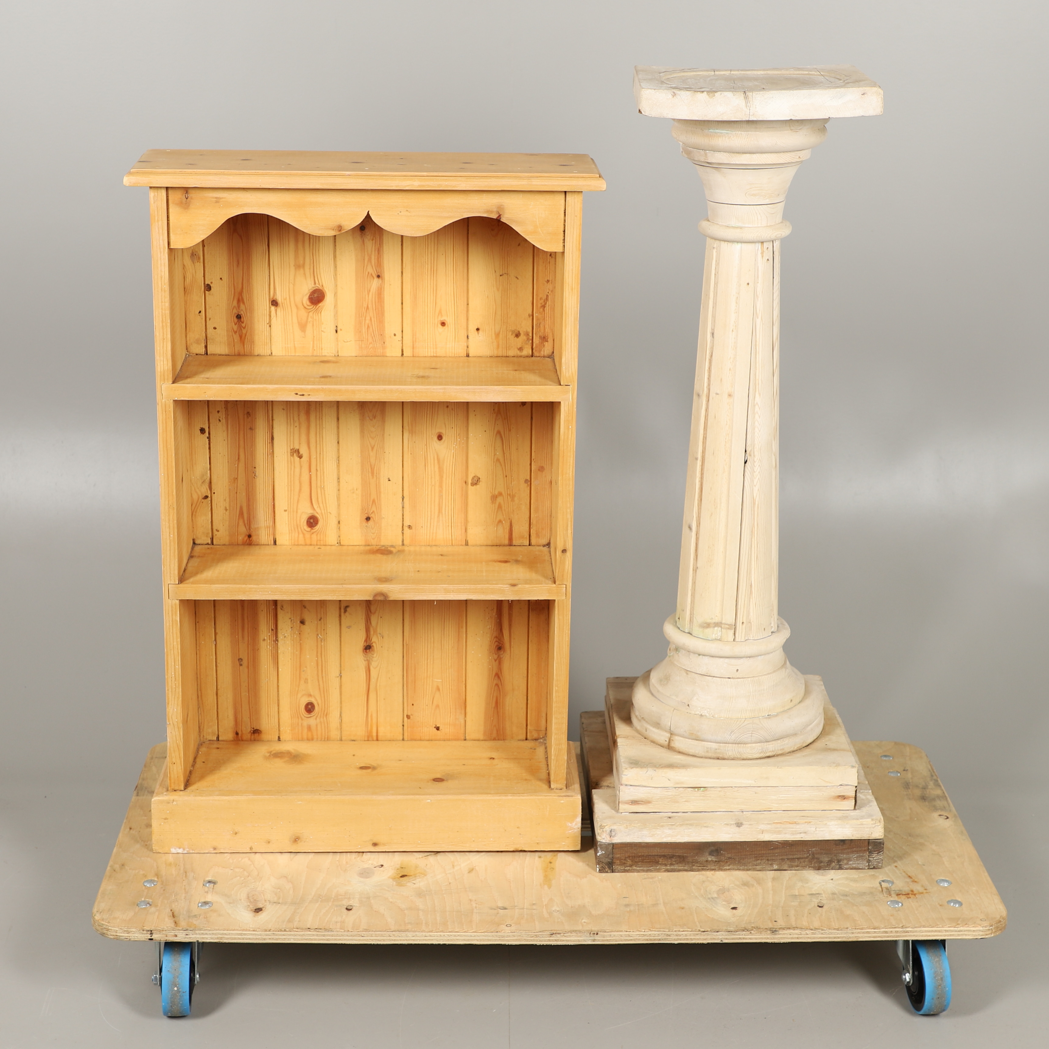 3180269. LARGE PINE JARDINIERE STAND & MODERN PINE BOOKCASE.