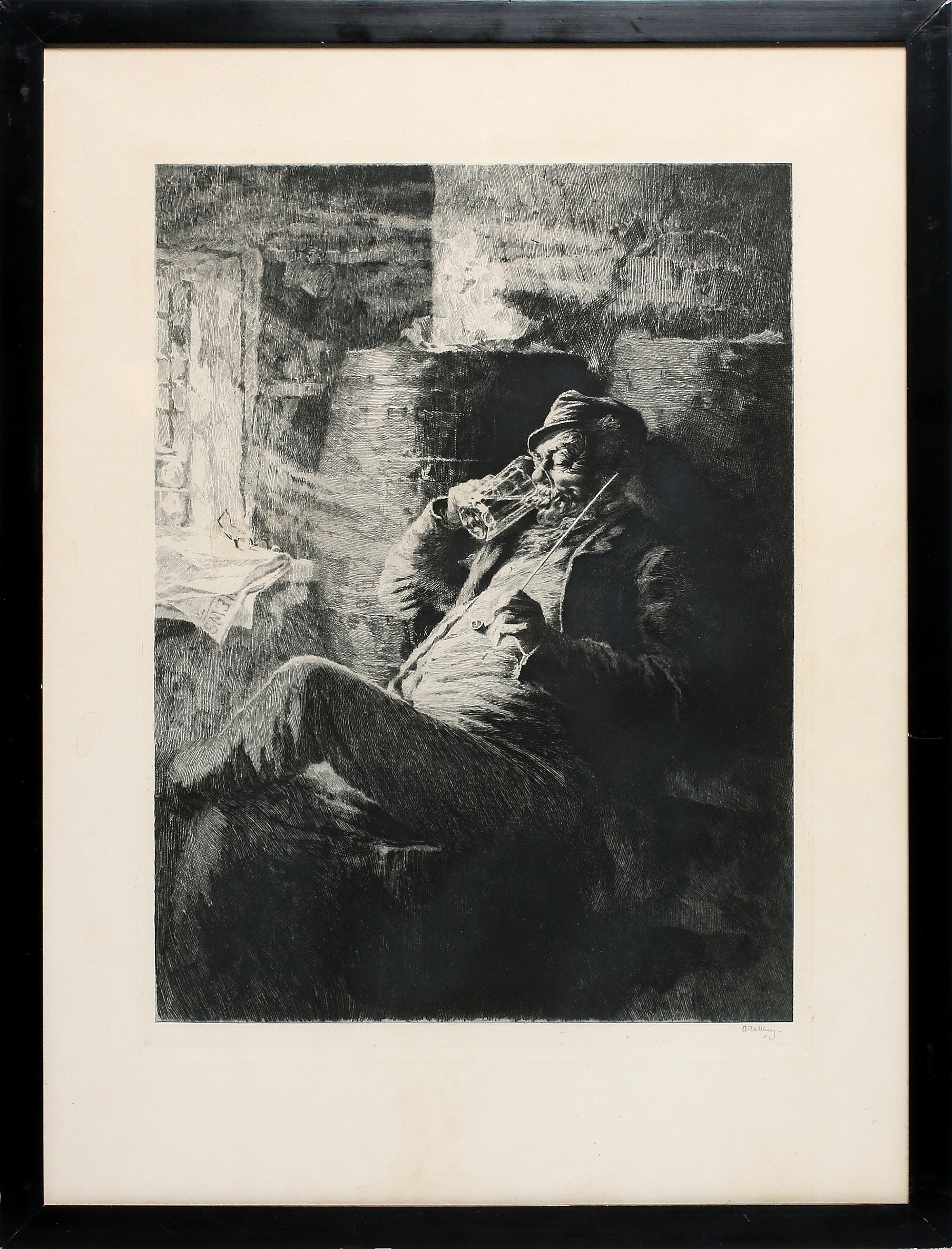 318035. AXELL TALLBERG. "The Beer Drinker", etching, signed.