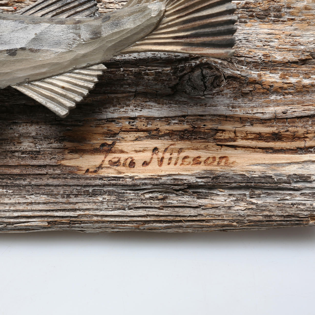 3180626. JAN NILSSON. Wall mural, wood, fish, signed.