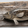 JAN NILSSON. Wall mural, wood, fish, signed.
