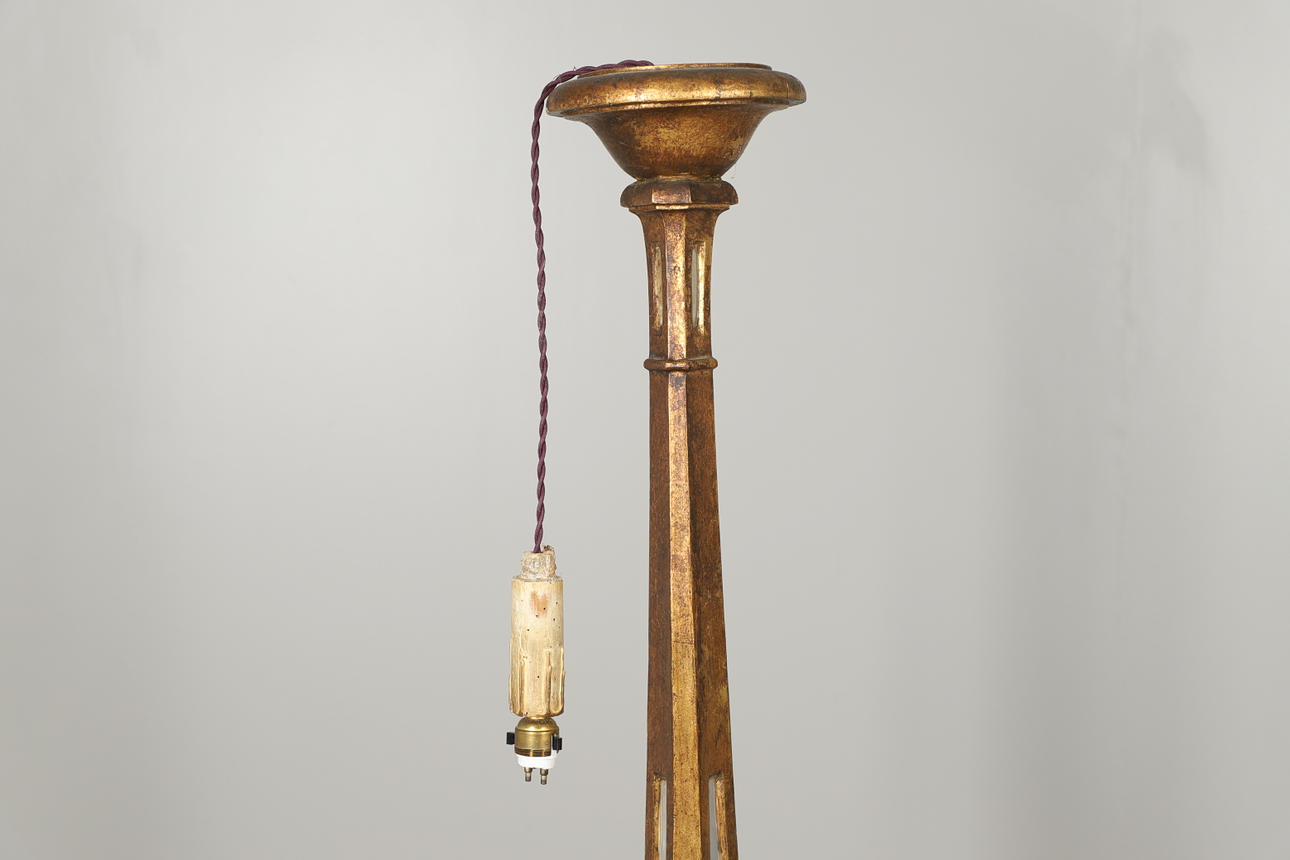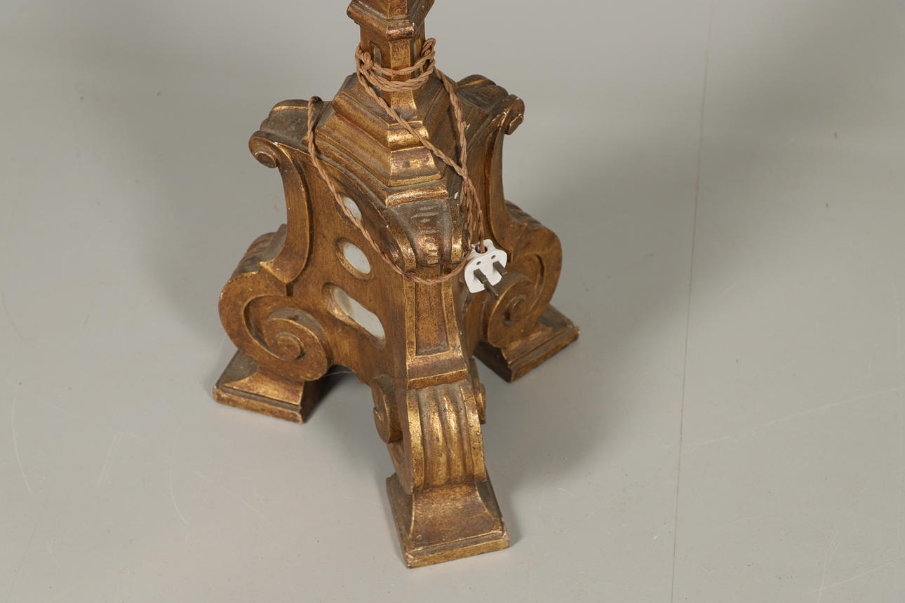 3181248. LARGE GILDED WOODEN STANDARD LAMP.