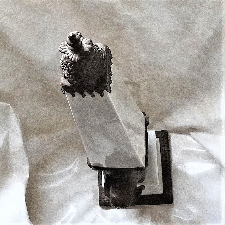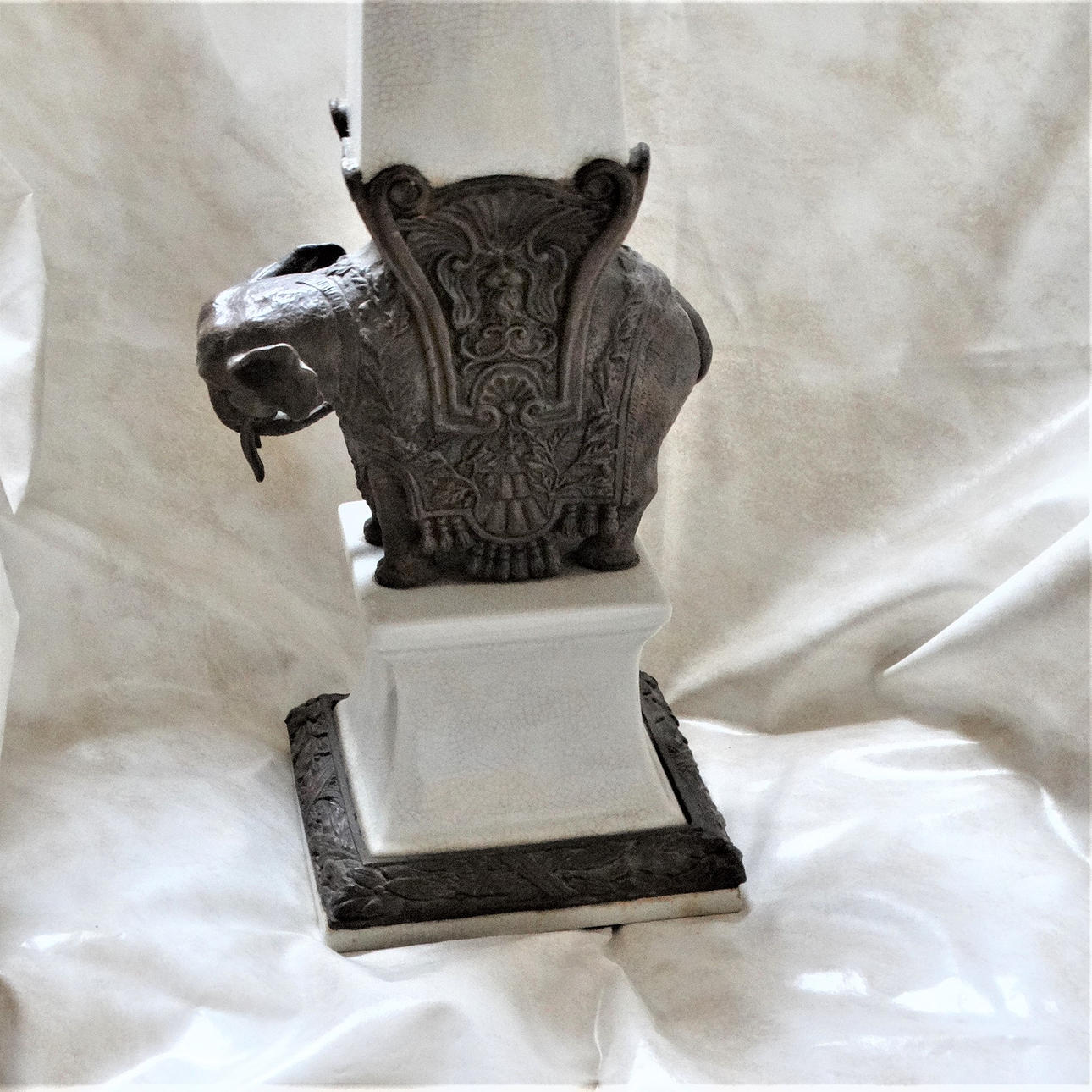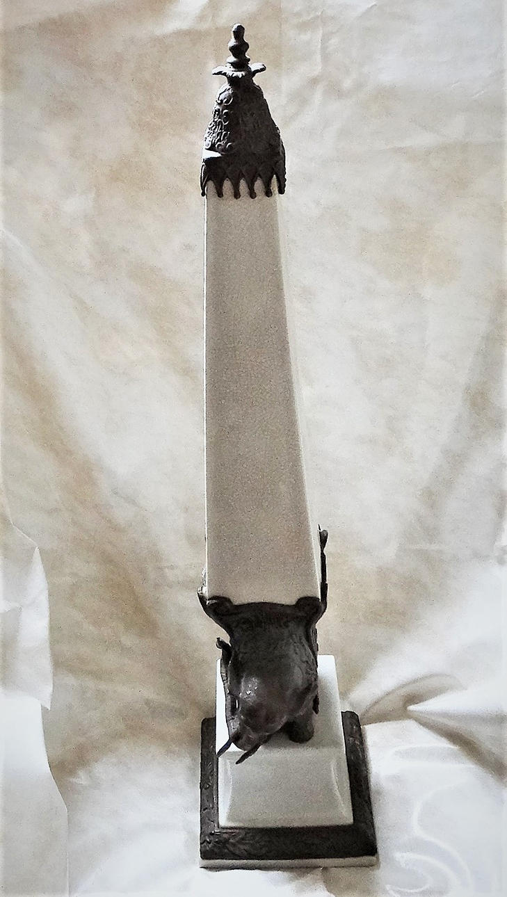 Ceramic obelisk with bronze elephant by Bernini, about 64 cm high. Height including elephant approx. 25 cm Base about 15 x 15 cm, around 1850, weighs about 3 kilos.