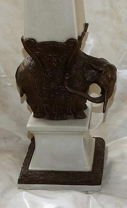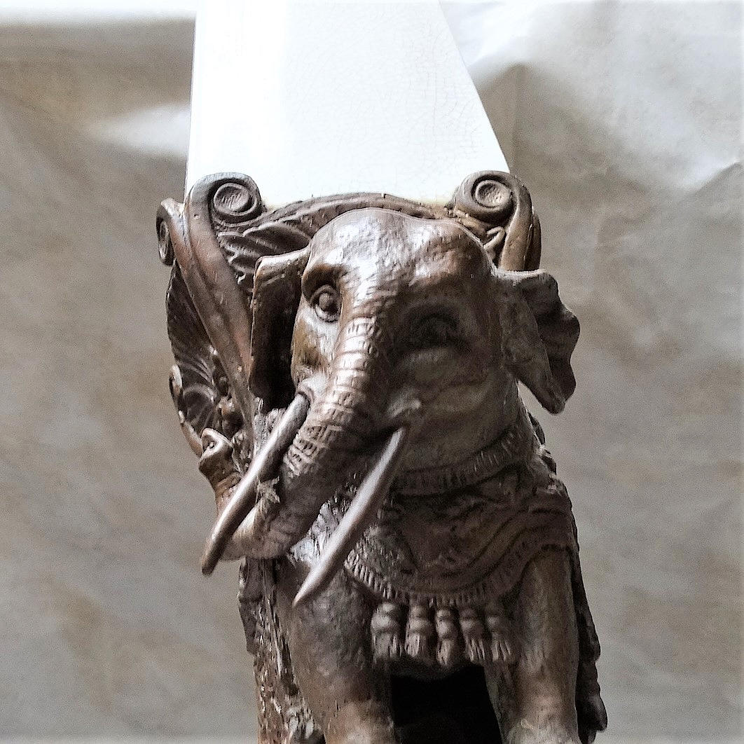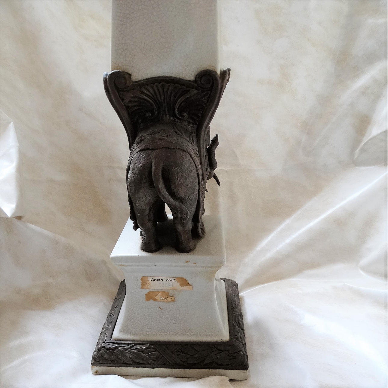 3181947. BRONZE ELEPHANT WITH CERAMIC OBELISK, AROUND 1900.