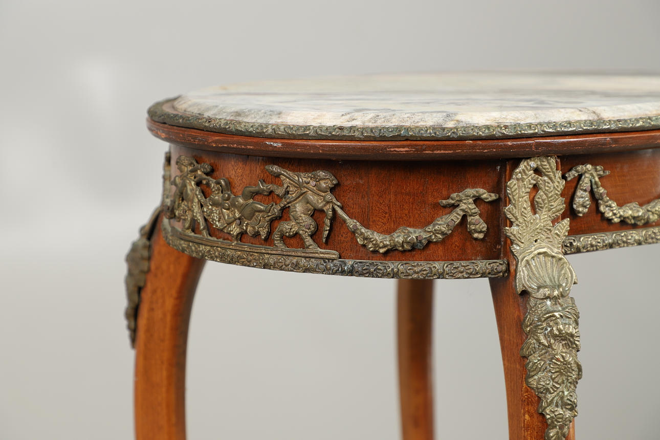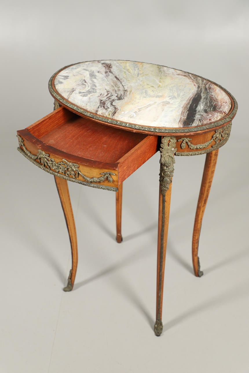 3187546. A FRENCH MARBLE TOPPED OCCASIONAL TABLE.