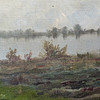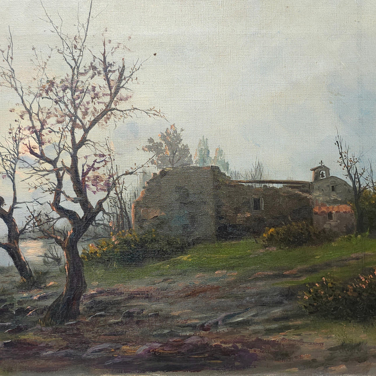 M. SIMON. OIL CANVAS. LANDSCAPE, WITH TOWN.