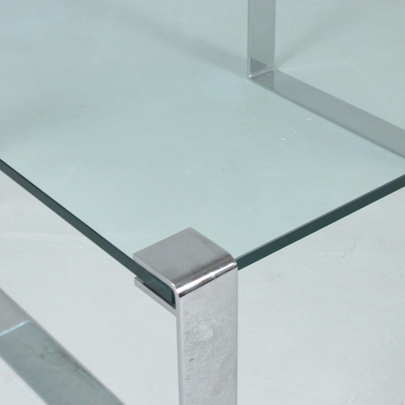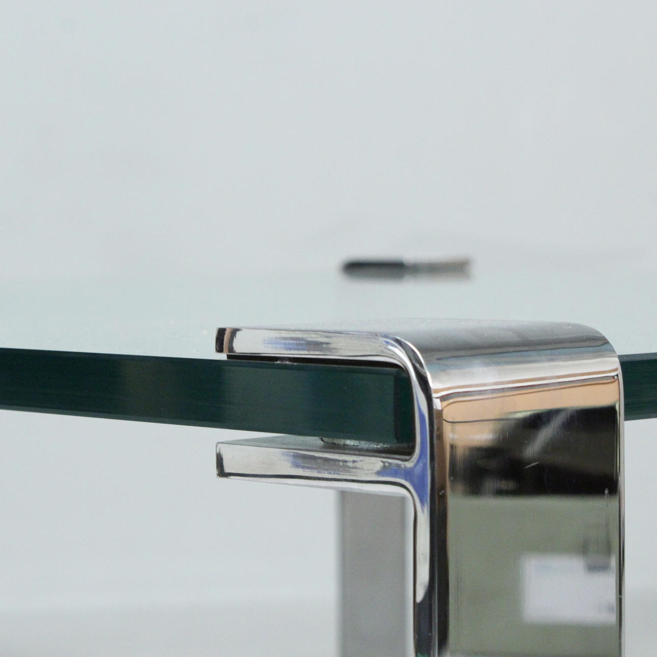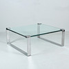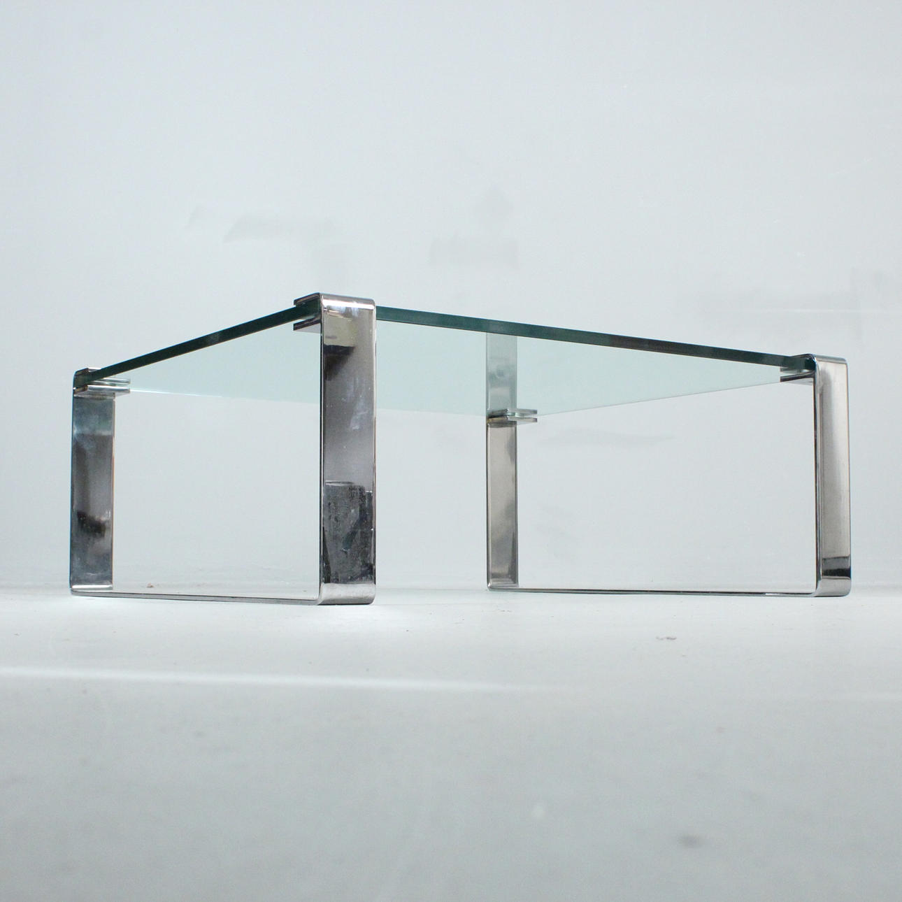 Peter Draenert for Draenert, coffee table, model 'Classic', steel clamps, high-gloss chrome, square glass top,