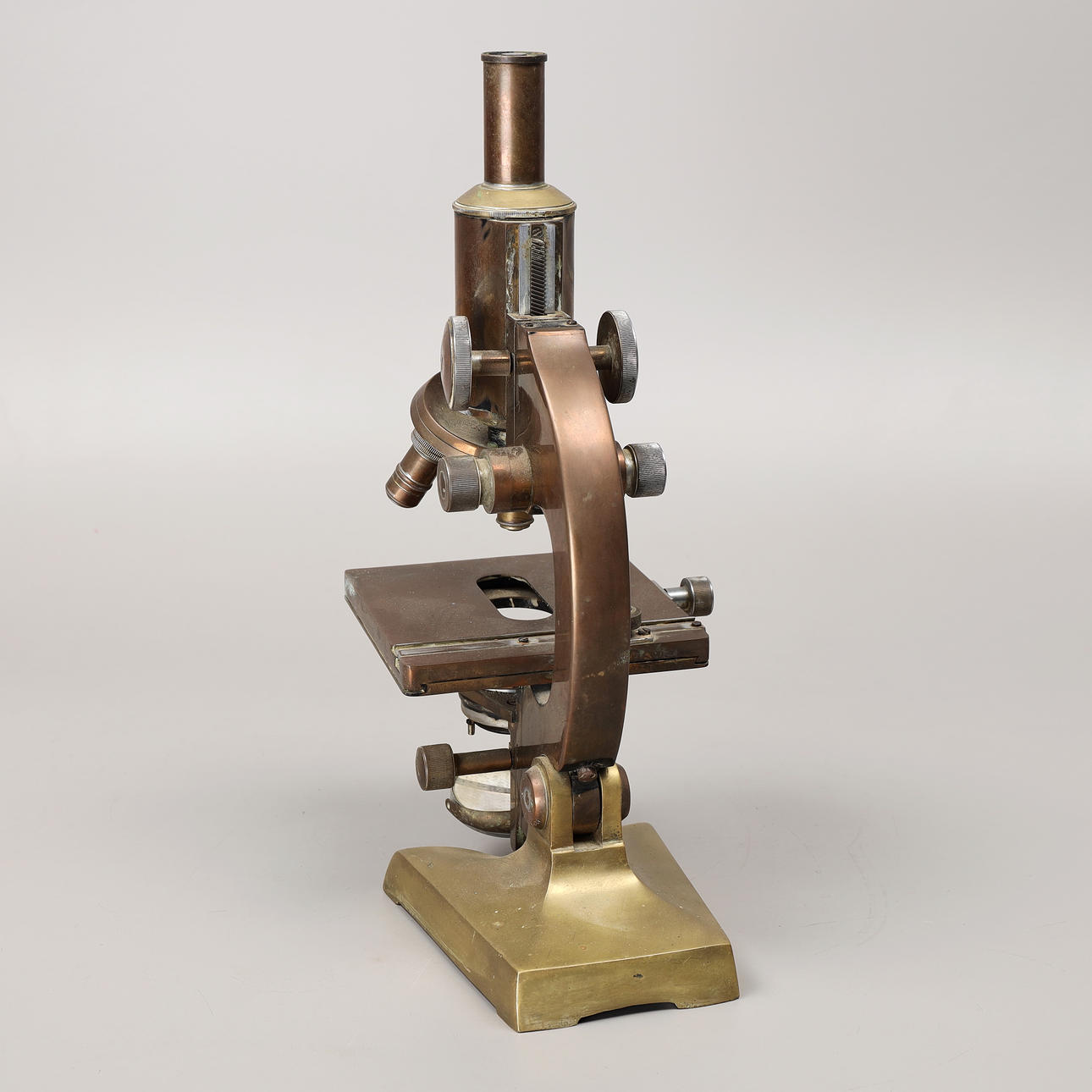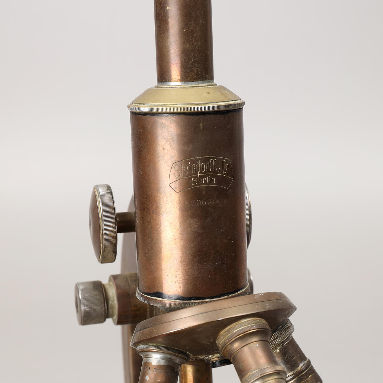 A brass microscope from Steindorff, Berlin, 19th century.